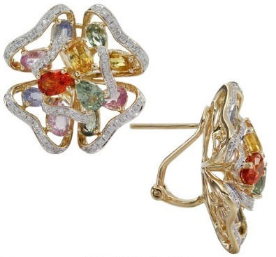14K YELLOW GOLD DIAMOND AND MULTICOLOR SAPPHIRE EARRING