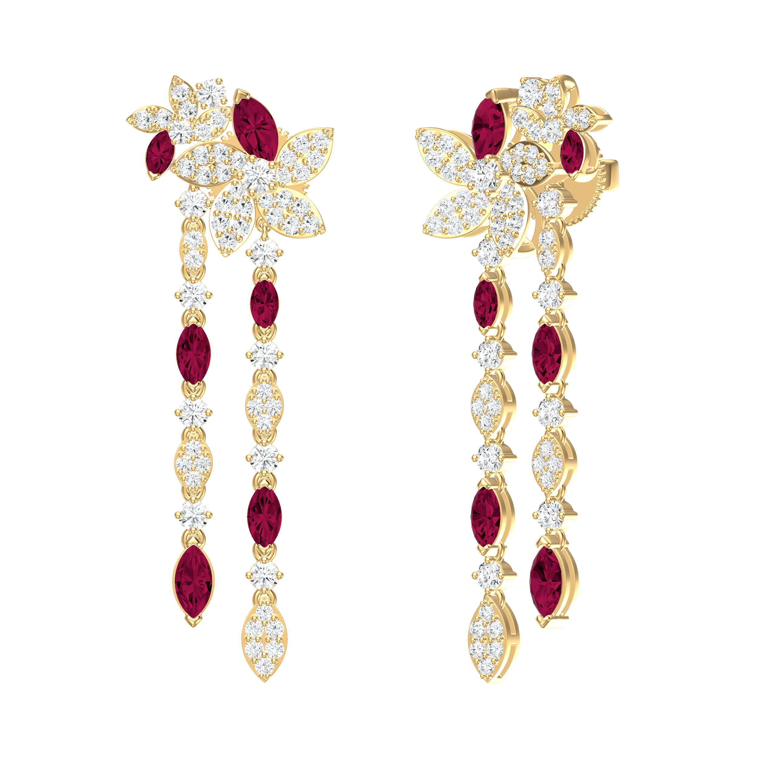 14K YELLOW GOLD DIAMOND AND RUBY FLOWER EARRING