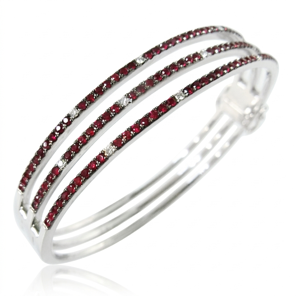 14K WHITE GOLD DIAMOND AND RUBY BANGLE