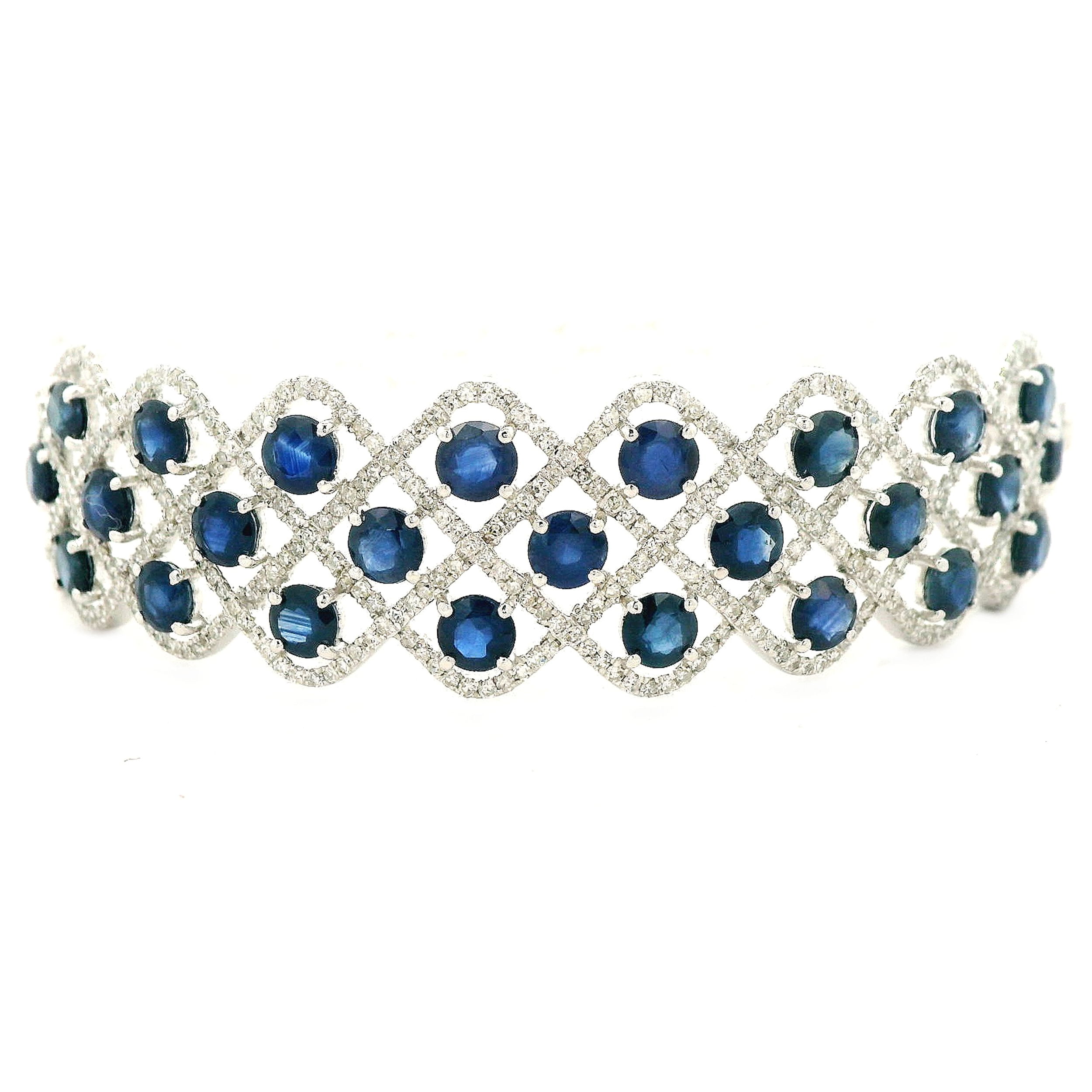14K WHITE GOLD DIAMOND AND SAPPHIRE BANGLE