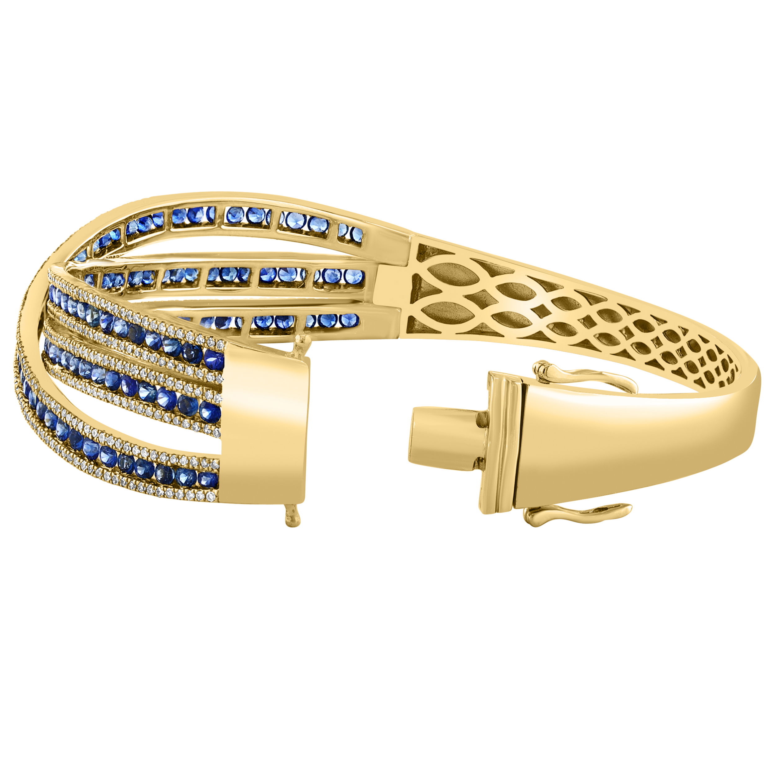 14K YELLOW GOLD DIAMOND AND SAPPHIRE BANGLE