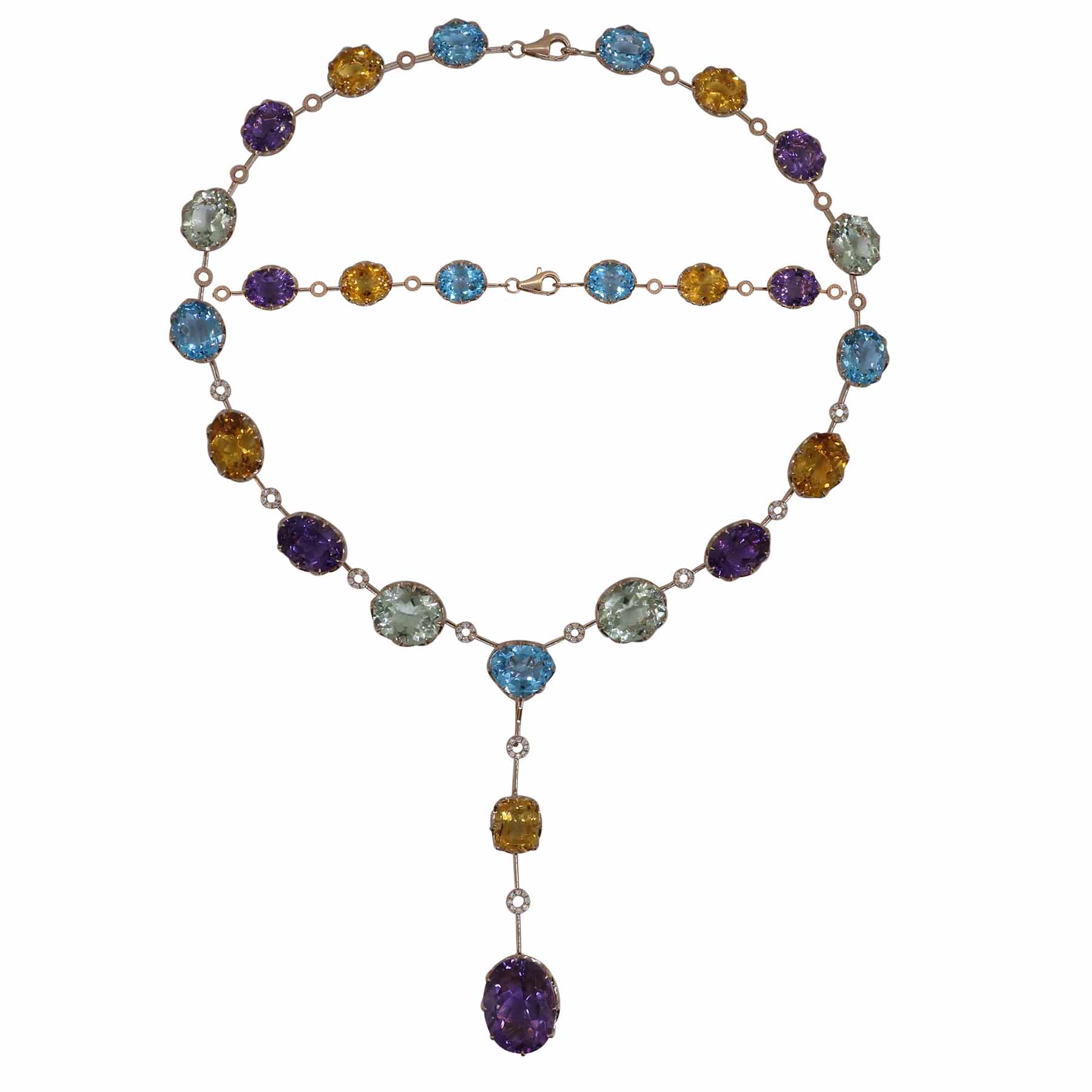 14K ROSE GOLD DIAMOND, MULTICOLOR AND AMETHYST NECKLACE