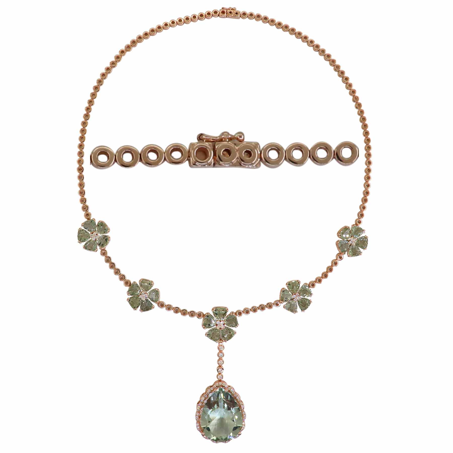 14K ROSE GOLD DIAMOND AND GREEN AMETHYST NECKLACE