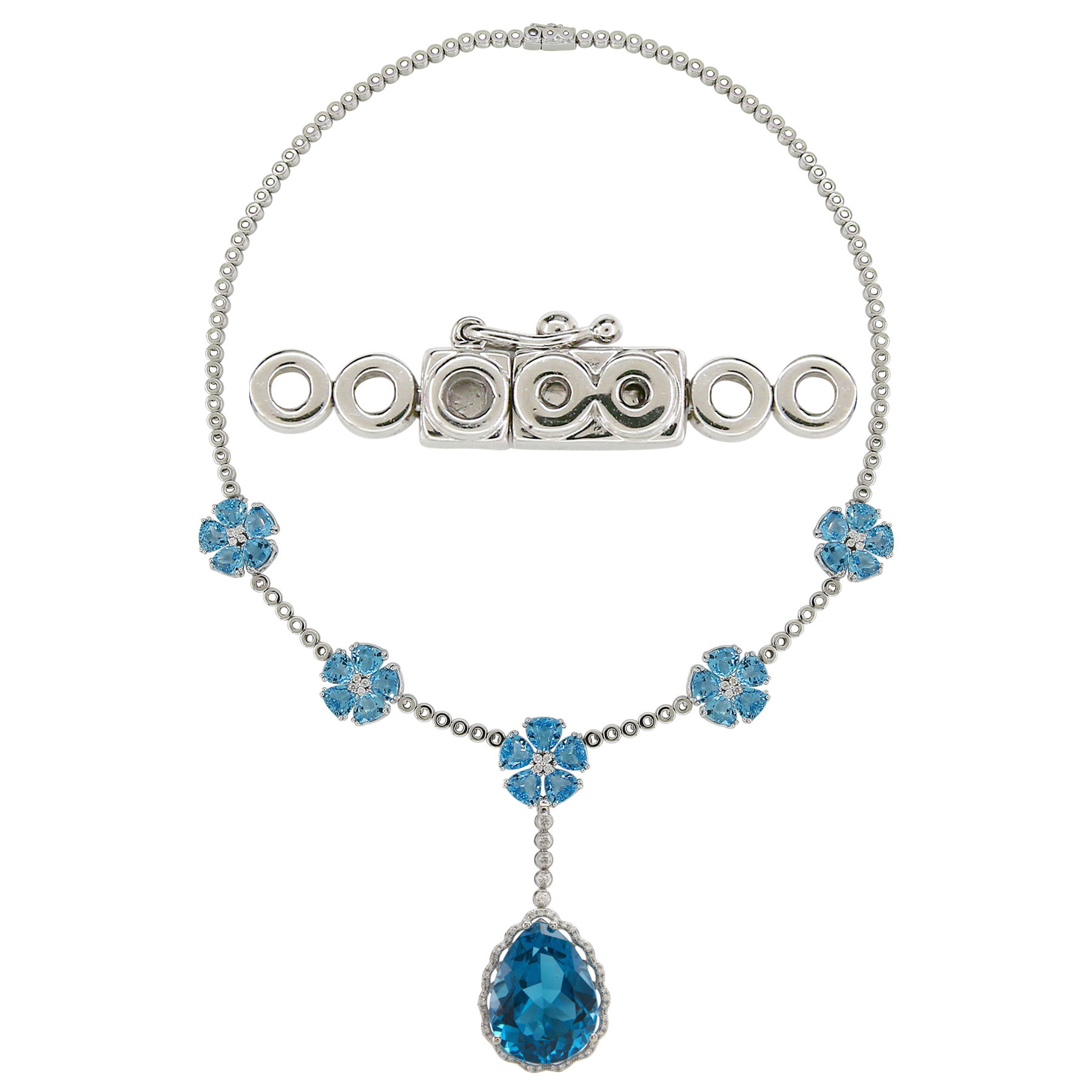 14K WHITE GOLD DIAMOND AND SWISS BLUE TOPAZ NECKLACE