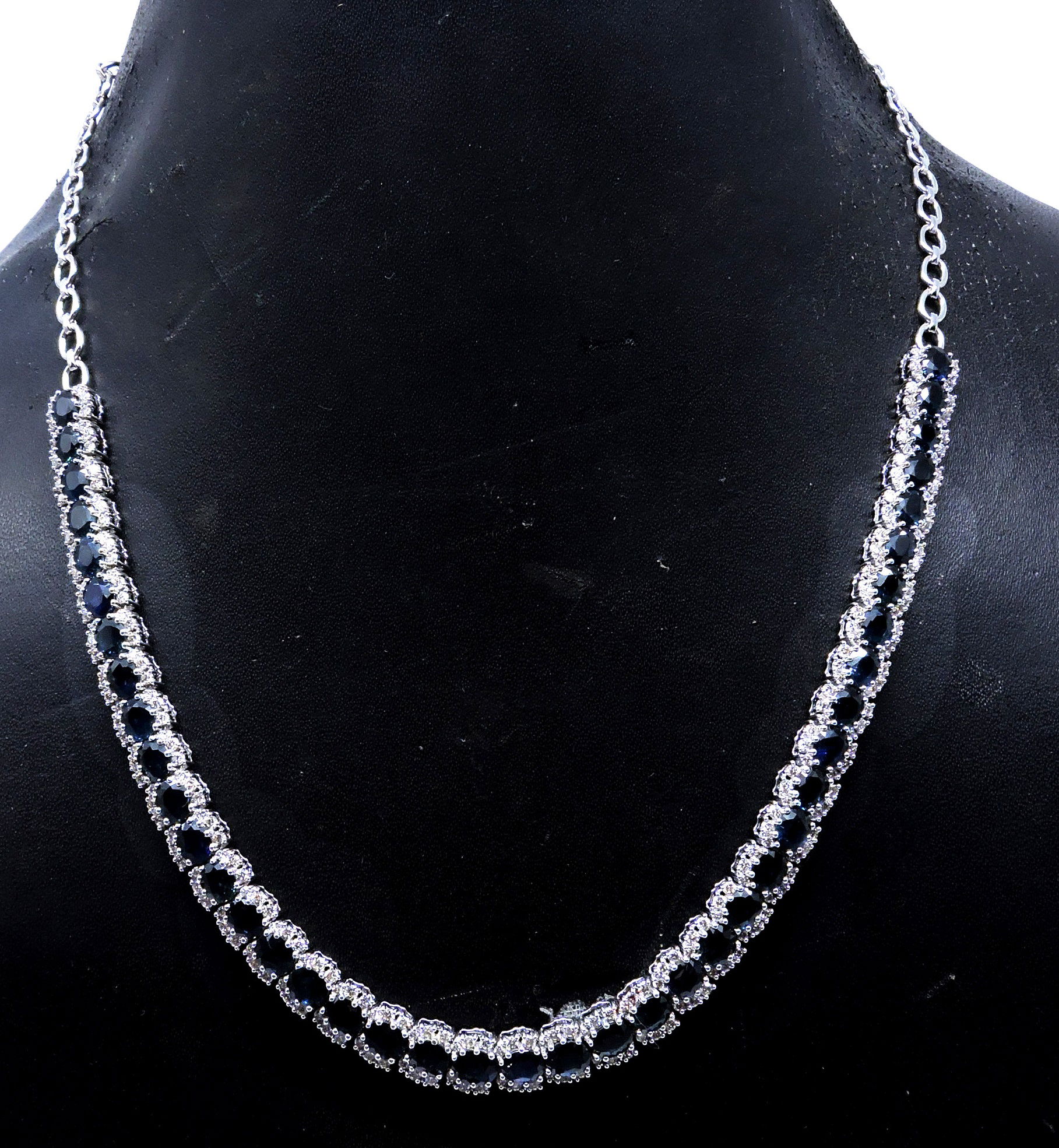 14K WHITE GOLD DIAMOND AND SAPPHIRE NECKLACE