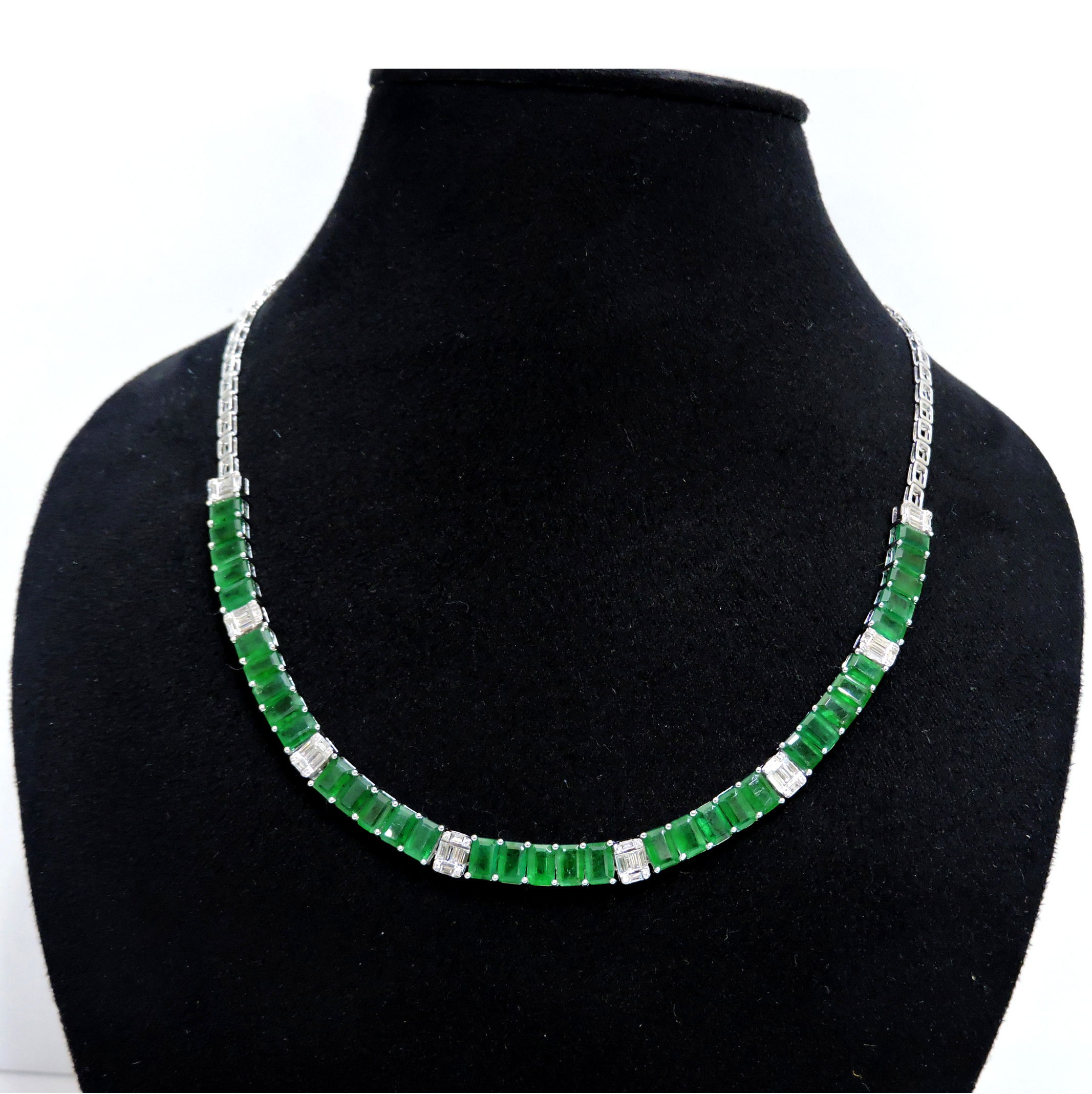 14K WHITE GOLD DIAMOND AND EMERALD NECKLACE