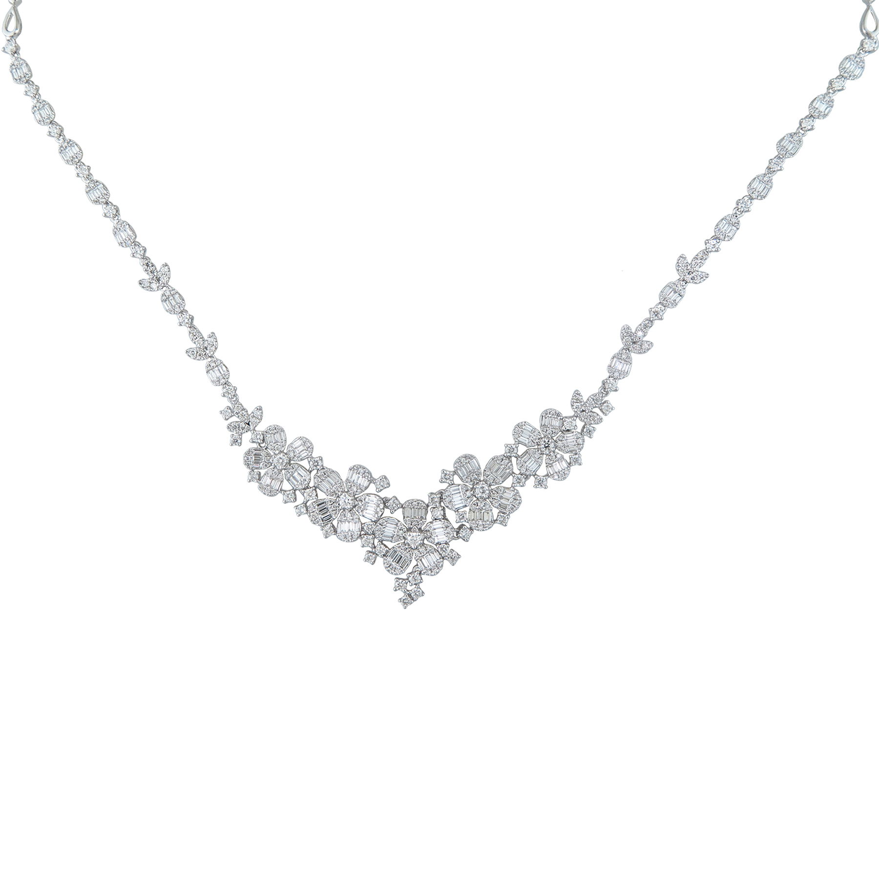 14K WHITE GOLD DIAMOND FLOWER NECKLACE