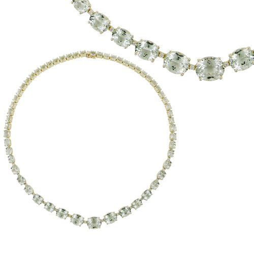 14K YELLOW GOLD DIAMOND AND GREEN AMETHYST NECKLACE