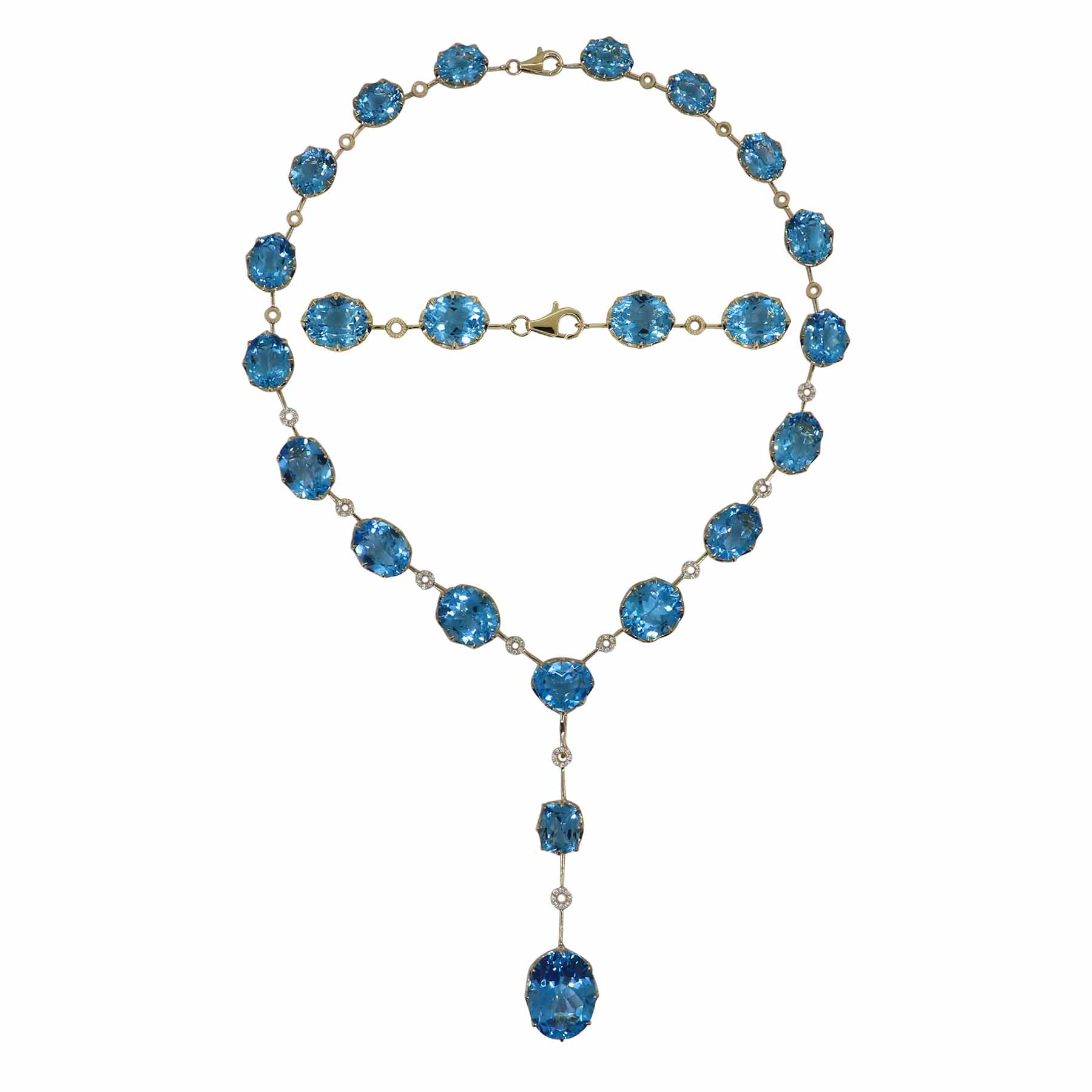 14K YELLOW GOLD DIAMOND AND SWISS BLUE TOPAZ NECKLACE