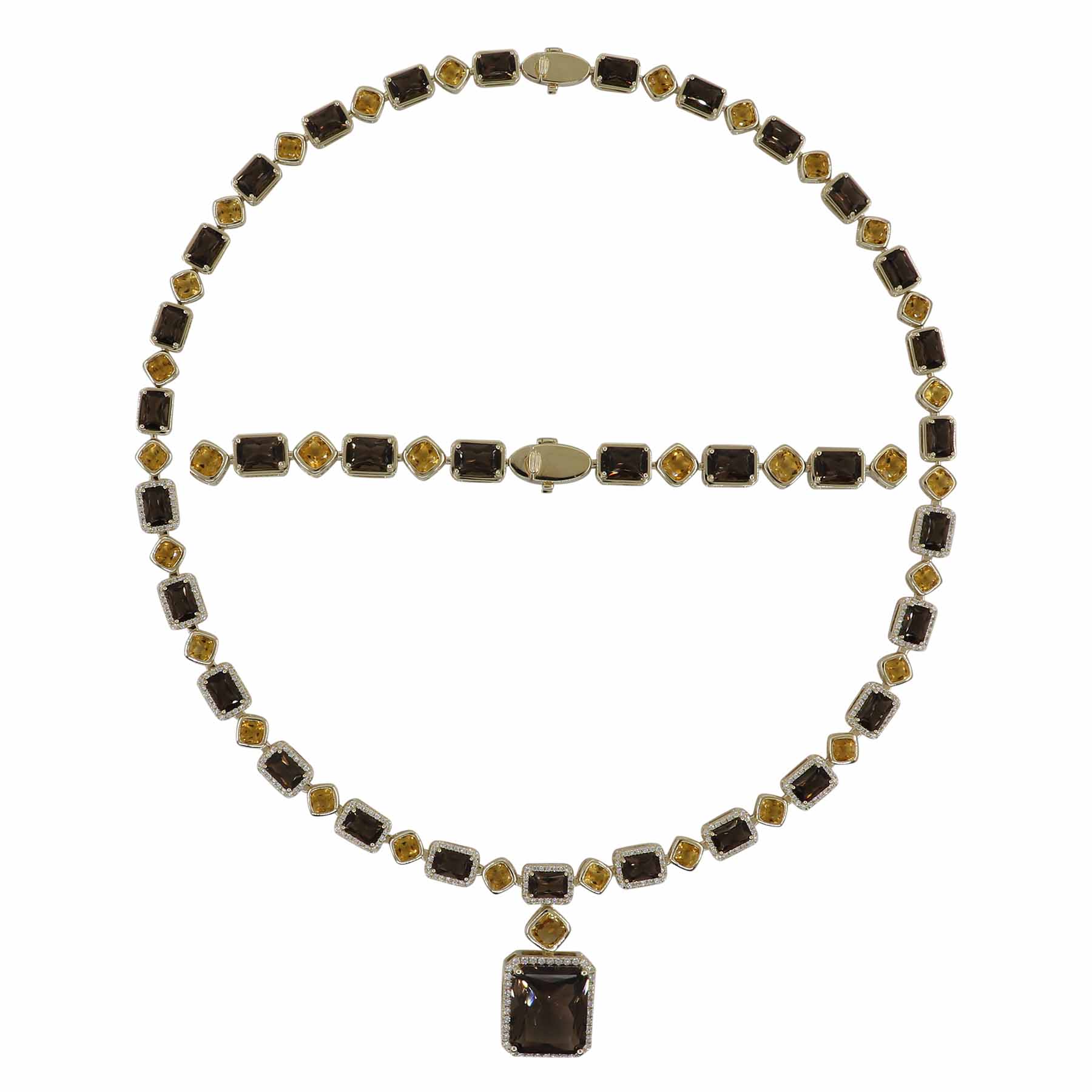 14K YELLOW GOLD DIAMOND, CITRINE AND SMOKY QUARTZ NECKLACE