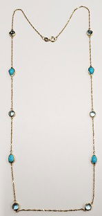 14K YELLOW GOLD SIWSS BLUE TOPAZ AND TURQUOISE NECKLACE