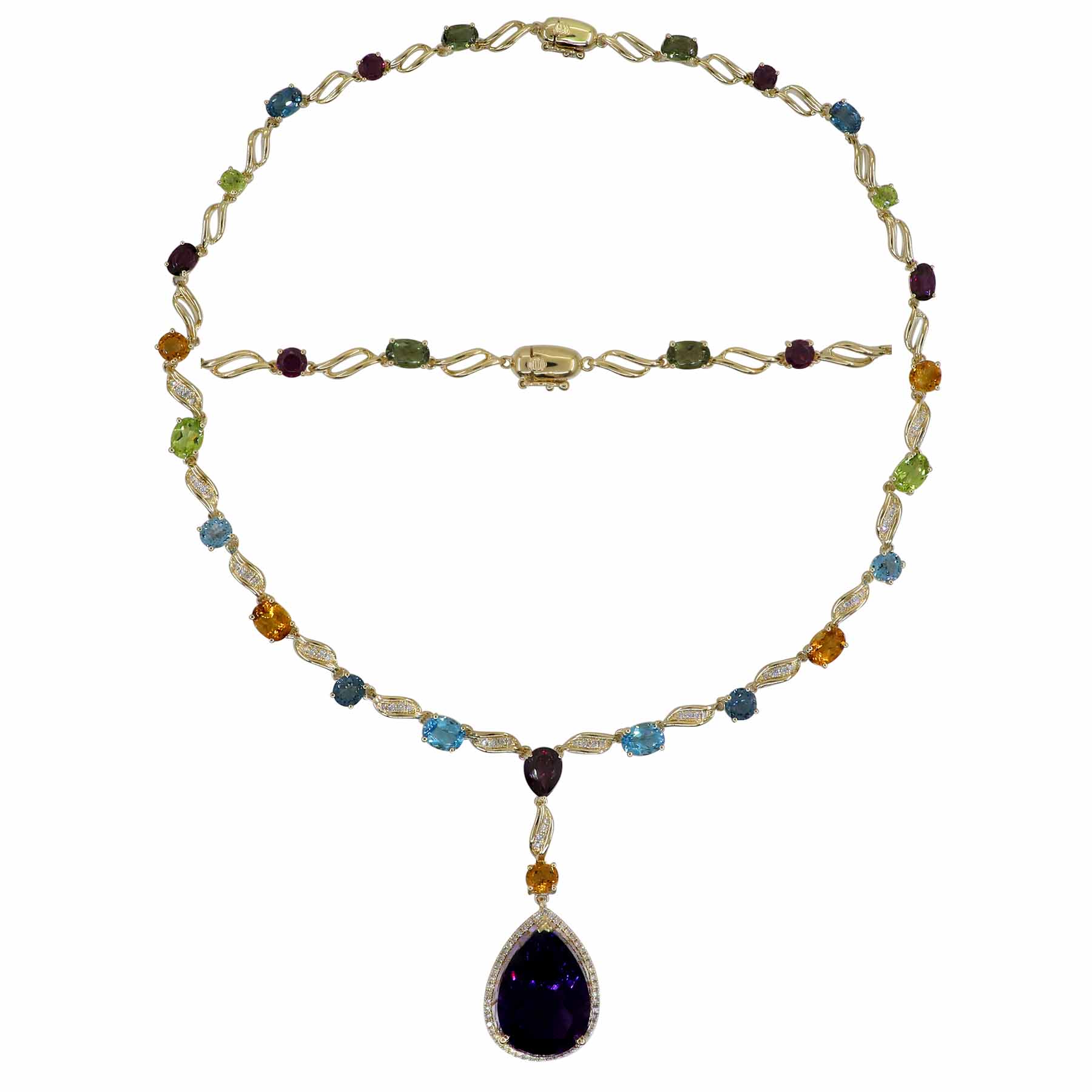 14K YELLOW GOLD DIAMOND, MULTICOLOR AND AMETHYST NECKLACE