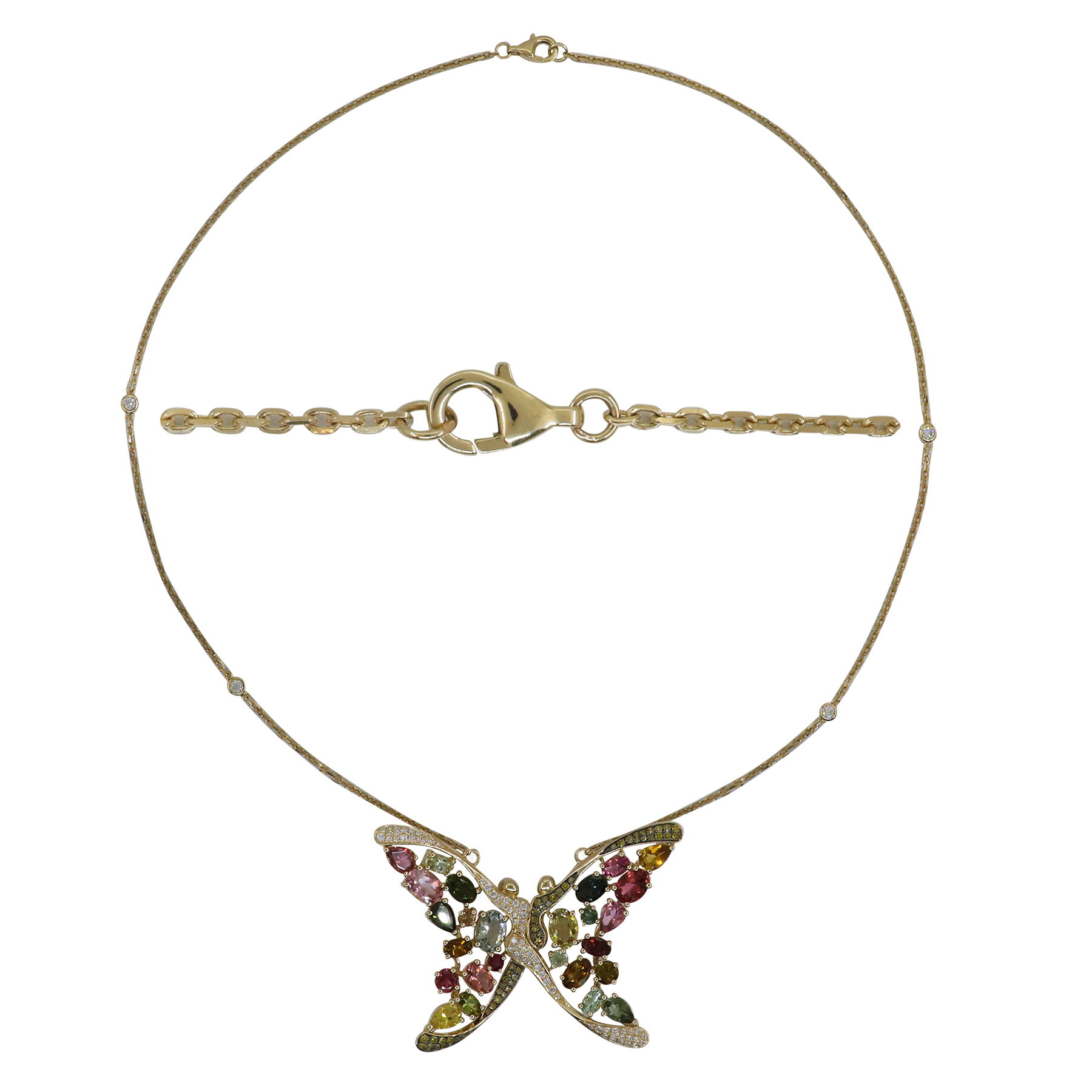 14K YELLOW GOLD DIAMOND, TREATED YELLOW DIAMOND AND MULTICOLOR NECKLACE