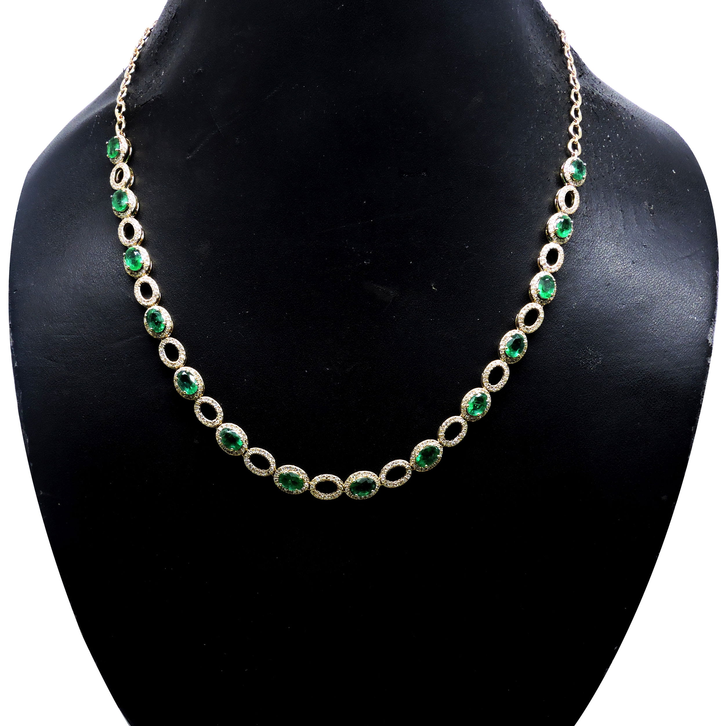 14K YELLOW GOLD DIAMOND AND EMERALD NECKLACE
