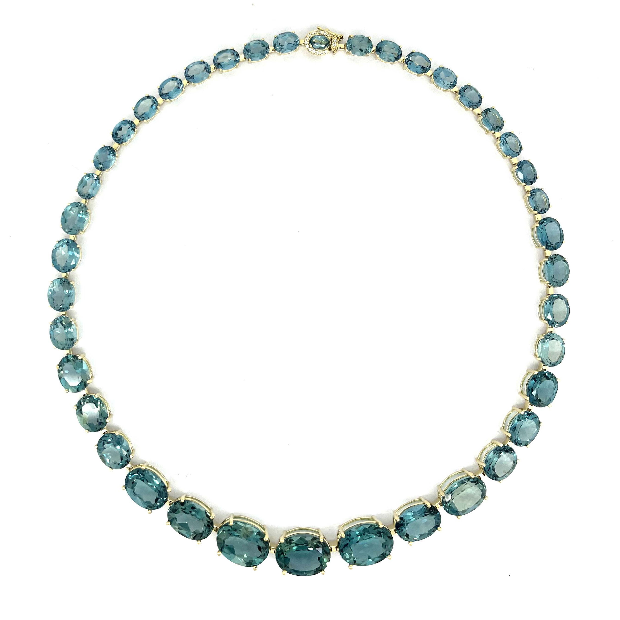 14K YELLOW GOLD DIAMOND AND FLUORITE BLUE TOPAZ NECKLACE