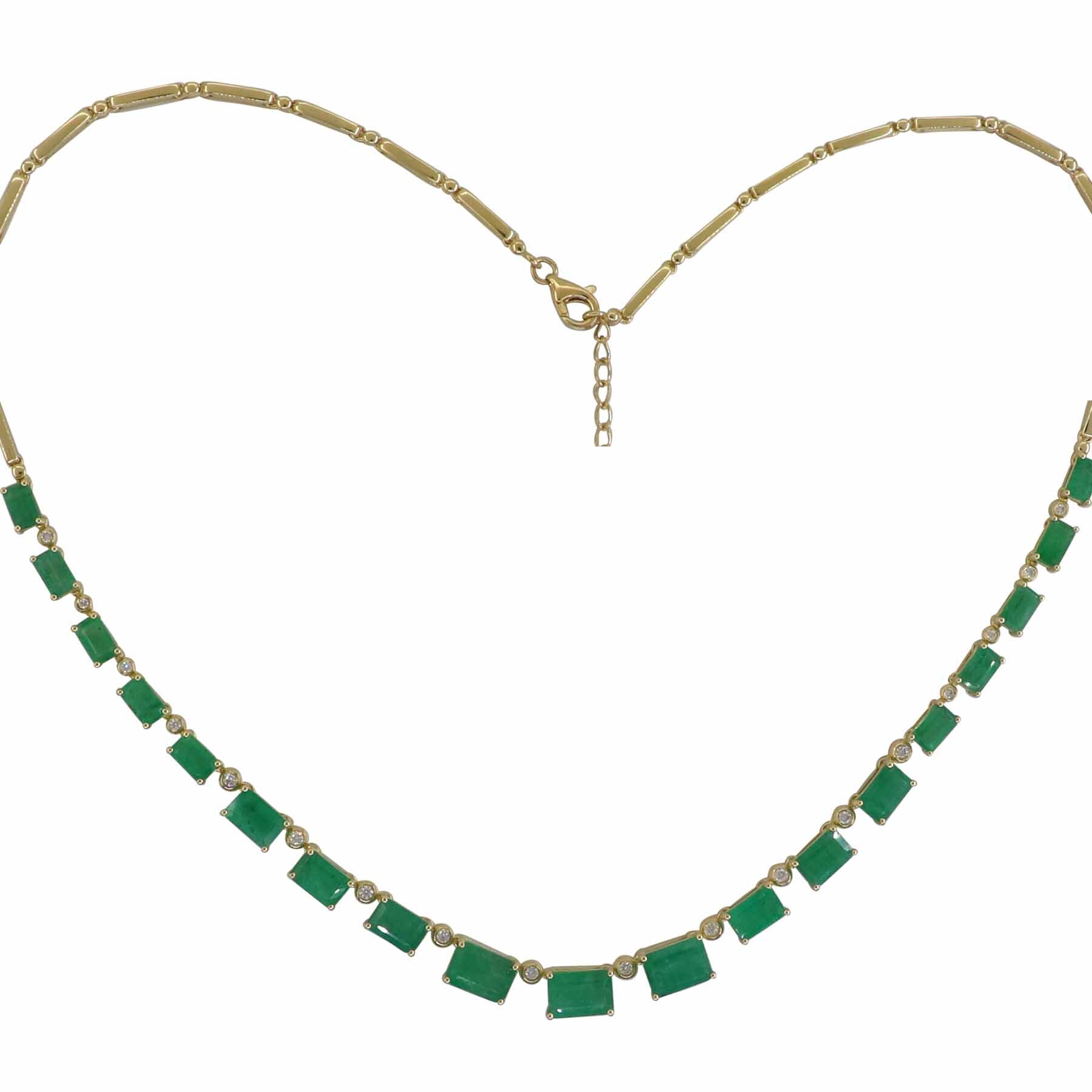 14K YELLOW GOLD DIAMOND AND EMERALD NECKLACE