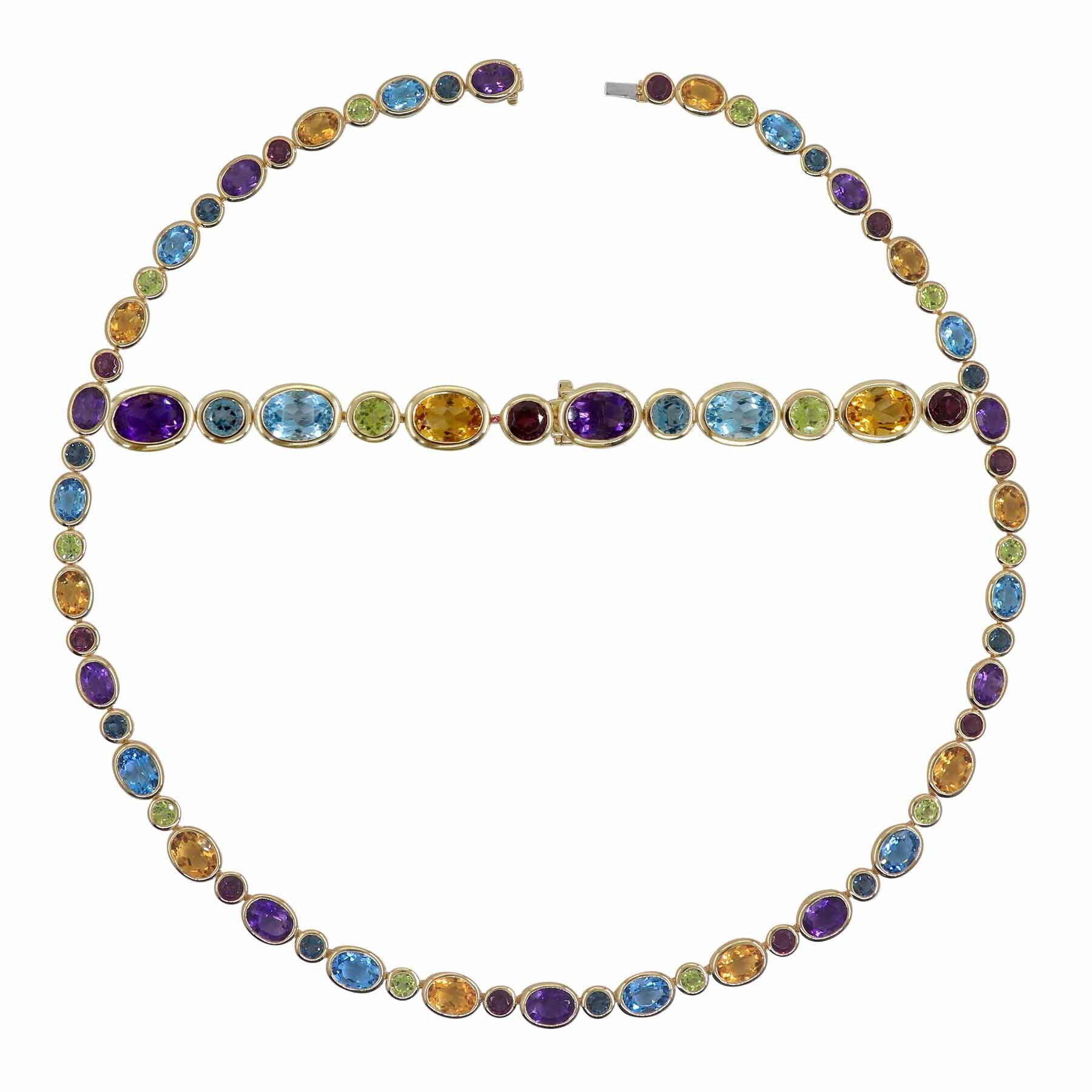 14K YELLOW GOLD MULTICOLOR GEMSTONE NECKLACE