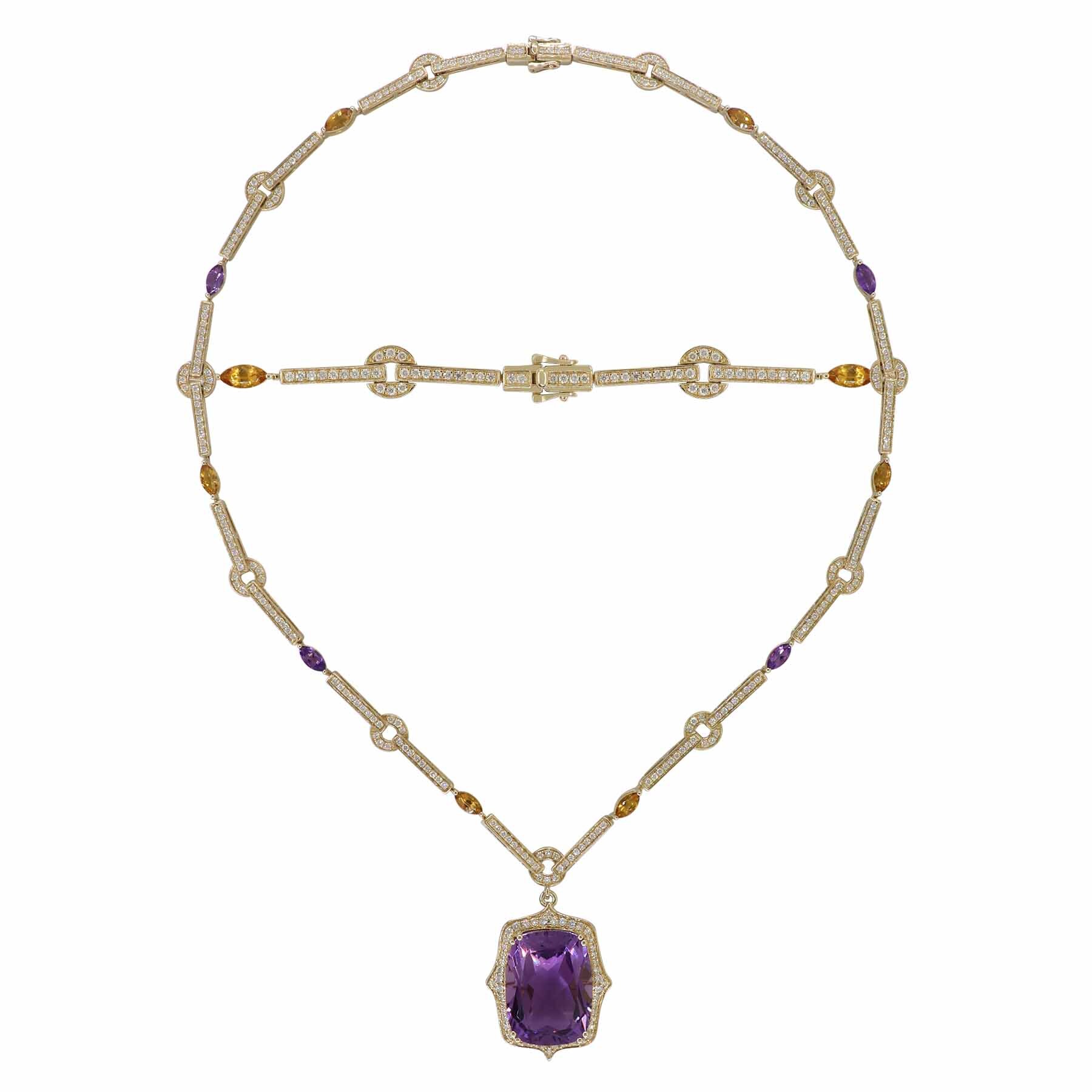 14K YELLOW GOLD DIAMOND, CITRINE AND AMETHYST NECKLACE