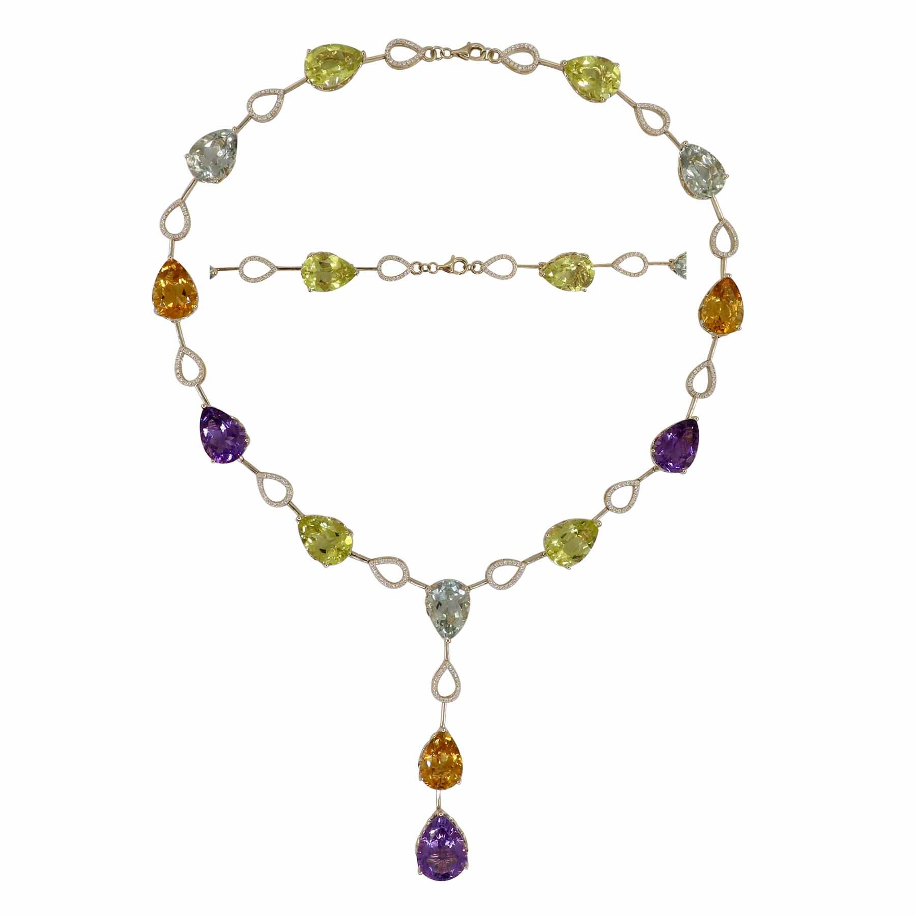 14K YELLOW GOLD DIAMOND AND MULTICOLOR GEMSTONE NECKLACE