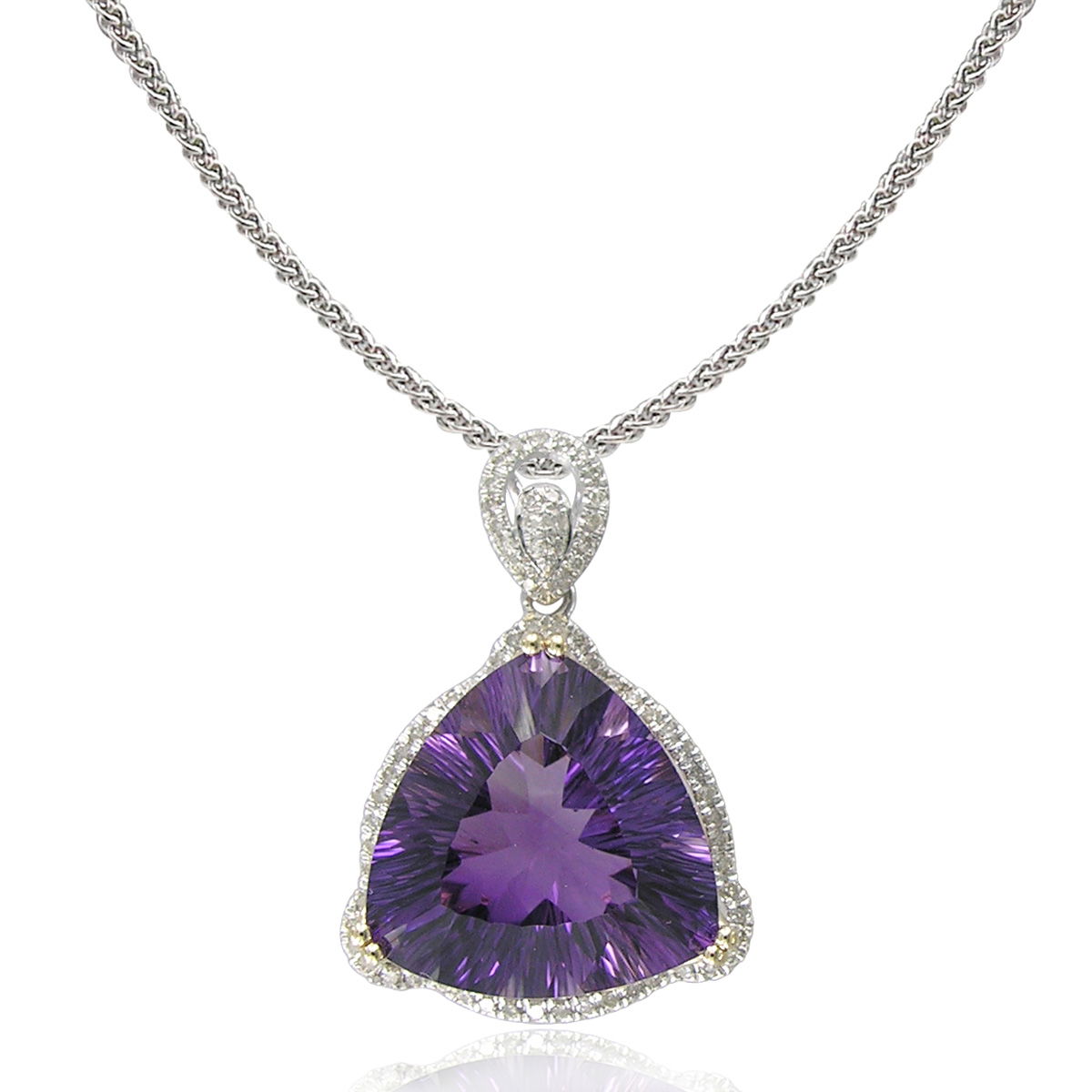 14K YELLOW AND WHITE GOLD DIAMOND AND AMETHYST PENDANT WITH CHAIN