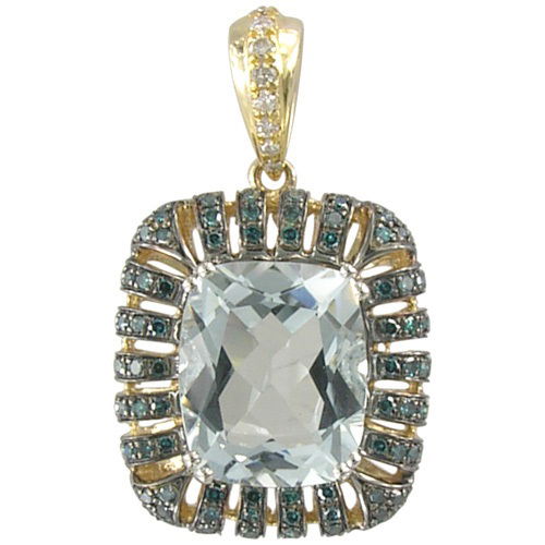 - 14K YELLOW AND WHITE GOLD DIAMOND, TREATED BLUE DIAMOND AND AQUAMARINE PENDANT WITH CHAIN