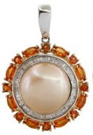 14K YELLOW AND WHITE GOLD DIAMOND, TREATED ORANGE SAPPHIRE AND ORANGE SOUTH SEA PEARL PENDANT WITH CHAIN