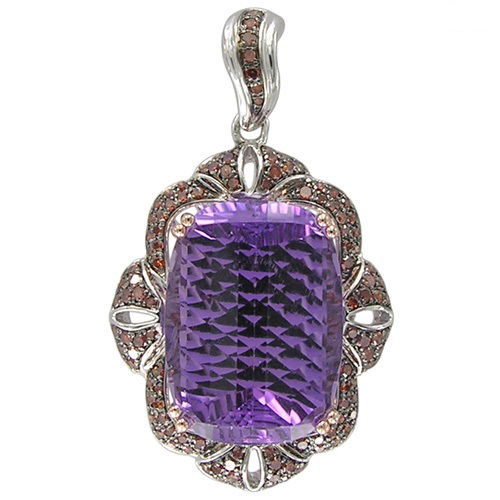 14K WHITE AND ROSE GOLD TREATED RED DIAMOND AND AMETHYST PENDANT WITH CHAIN