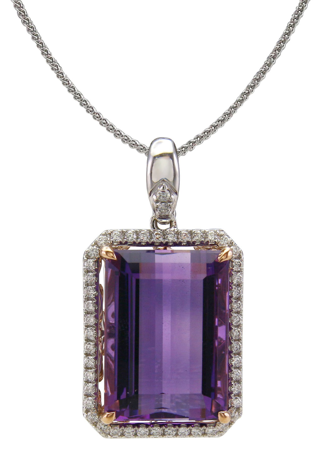 14K WHITE AND ROSE GOLD DIAMOND AND AMETHYST PENDANT WITH CHAIN