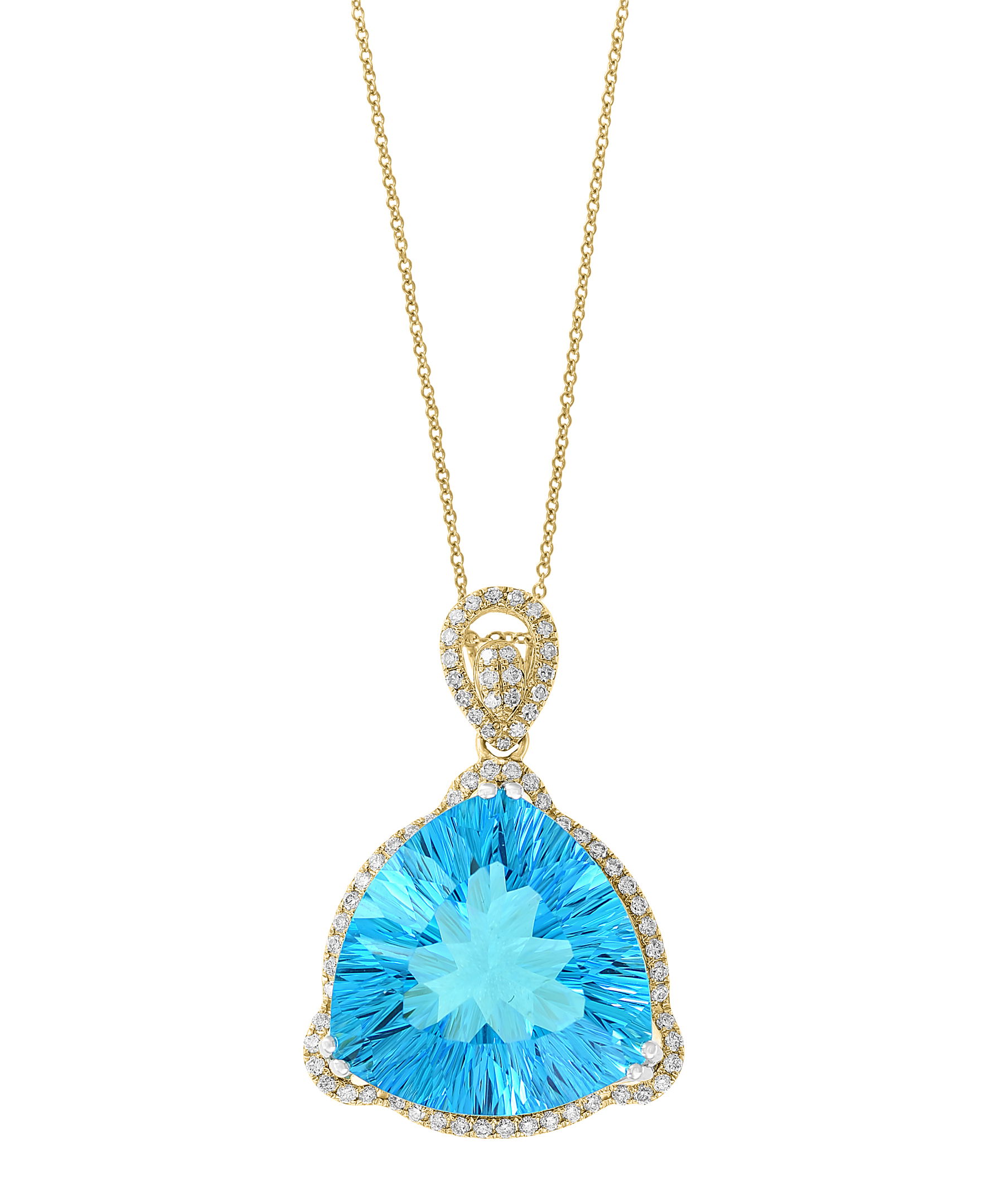 18K YELLOW AND WHITE GOLD DIAMOND AND SWISS BLUE TOPAZ PENDANT WITH CHAIN