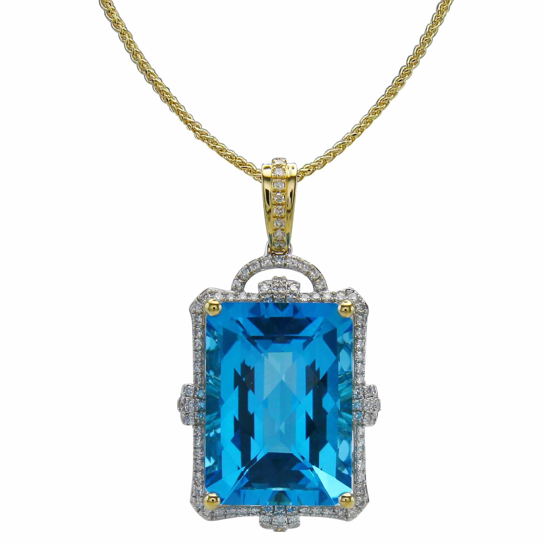 18K YELLOW AND WHITE GOLD DIAMOND AND SWISS BLUE TOPAZ PENDANT WITH CHAIN