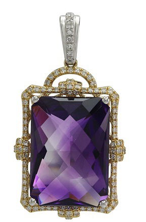18K YELLOW AND WHITE GOLD DIAMOND AND AMETHYST PENDANT WITH CHAIN