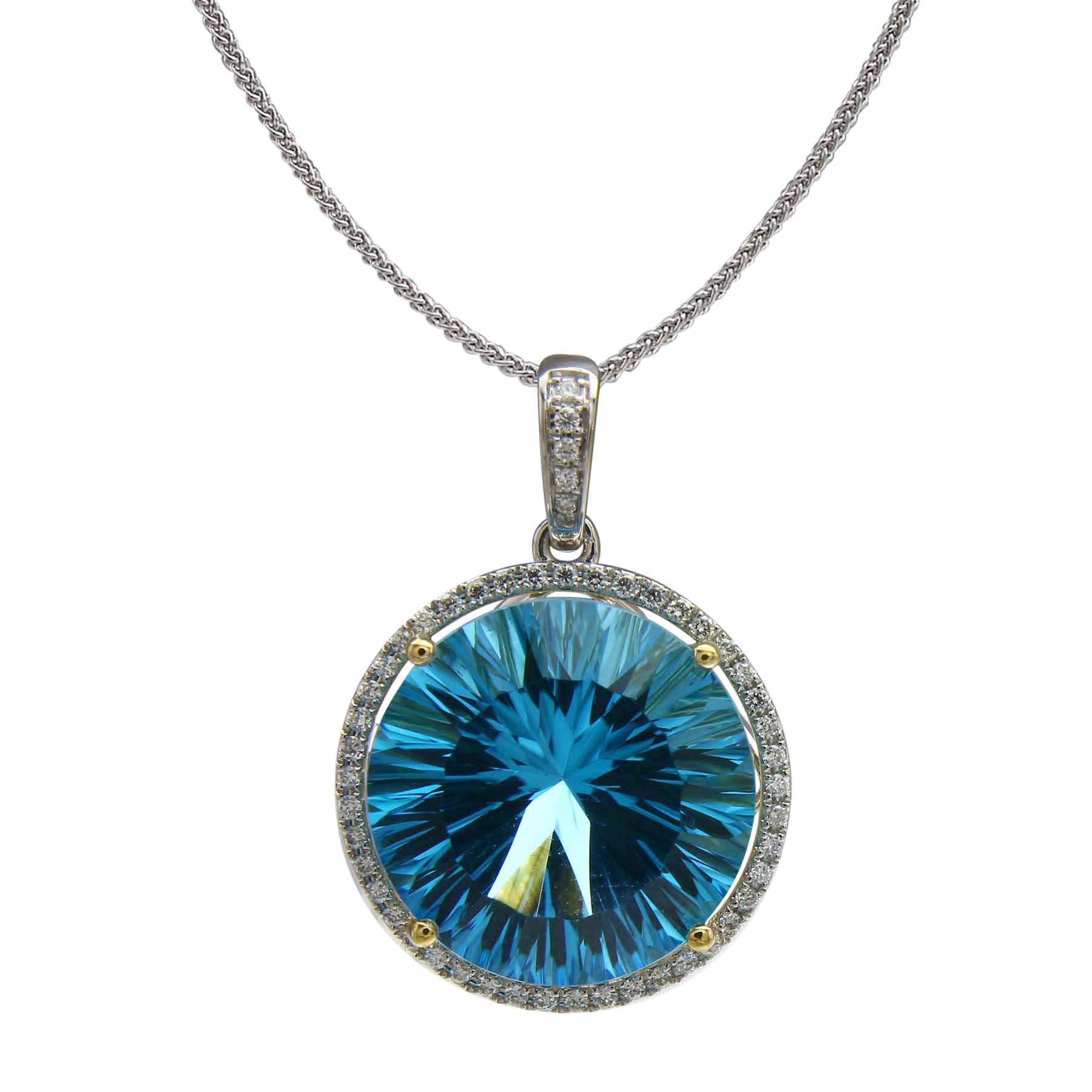 18K WHITE AND YELLOW GOLD DIAMOND AND SWISS BLUE TOPAZ PENDANT WITH CHAIN