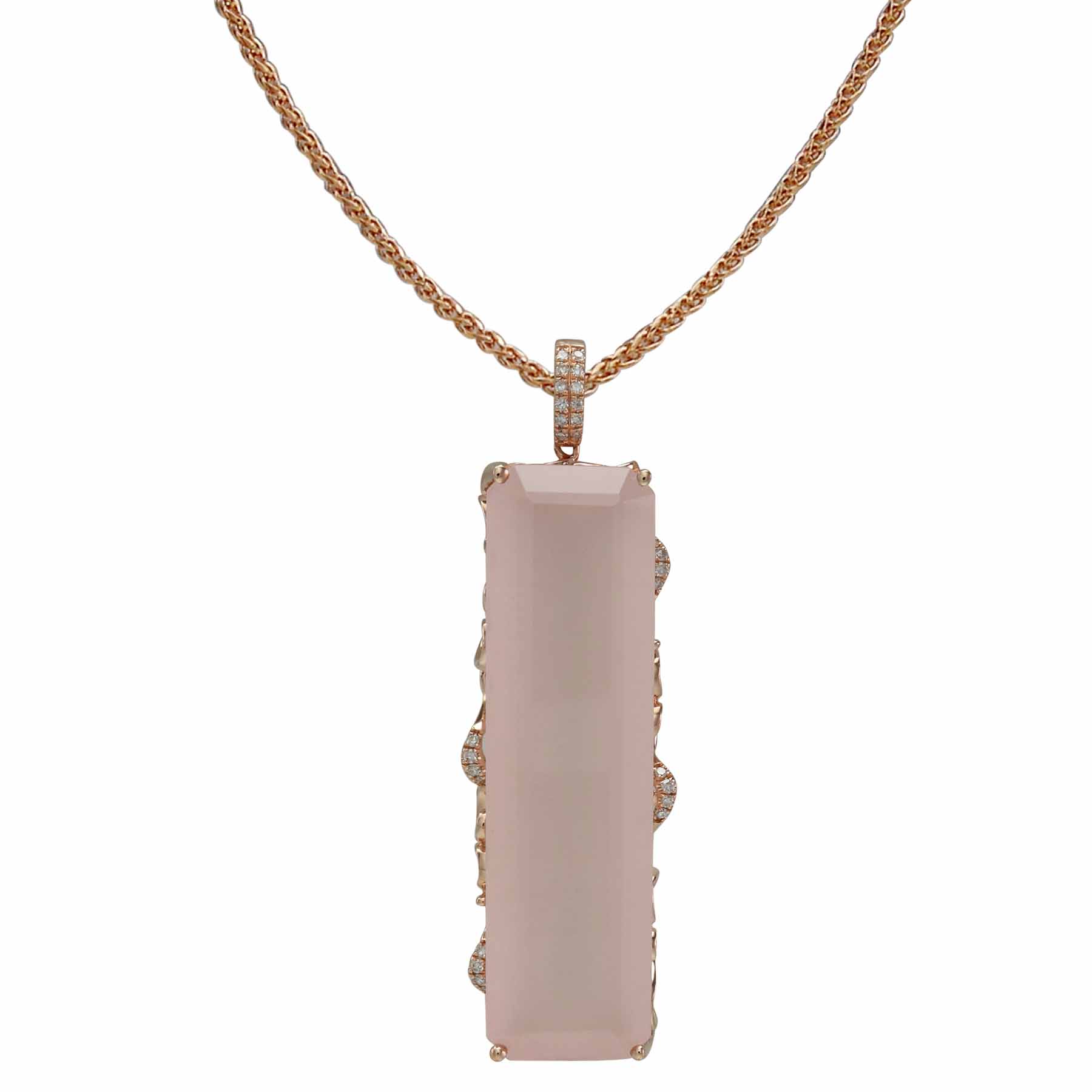 14K ROSE GOLD DIAMOND AND ROSE QUARTZ PENDANT WITH CHAIN