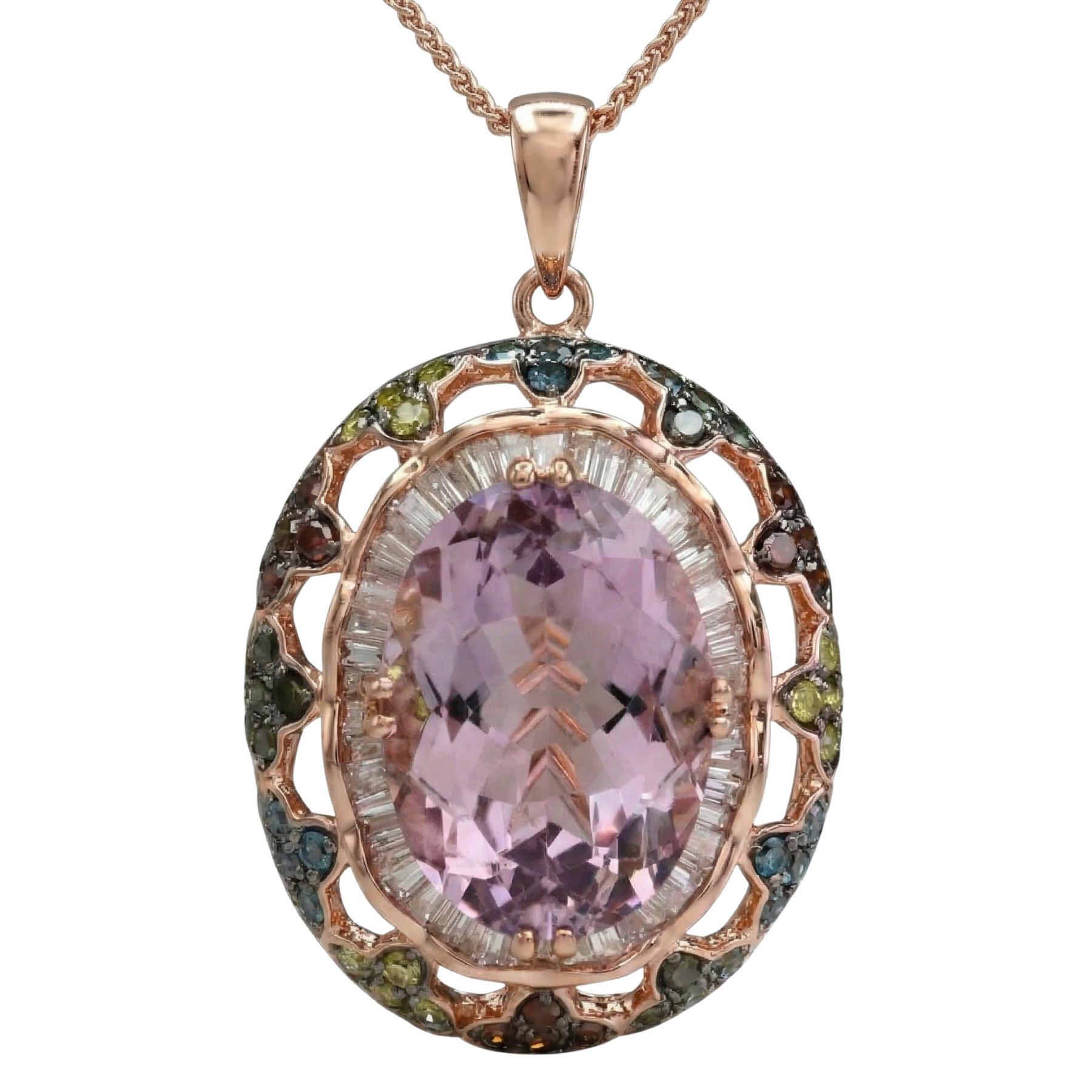 14K ROSE GOLD MULTICOLOR DIAMOND AND PINK AMETHYST PENDANT