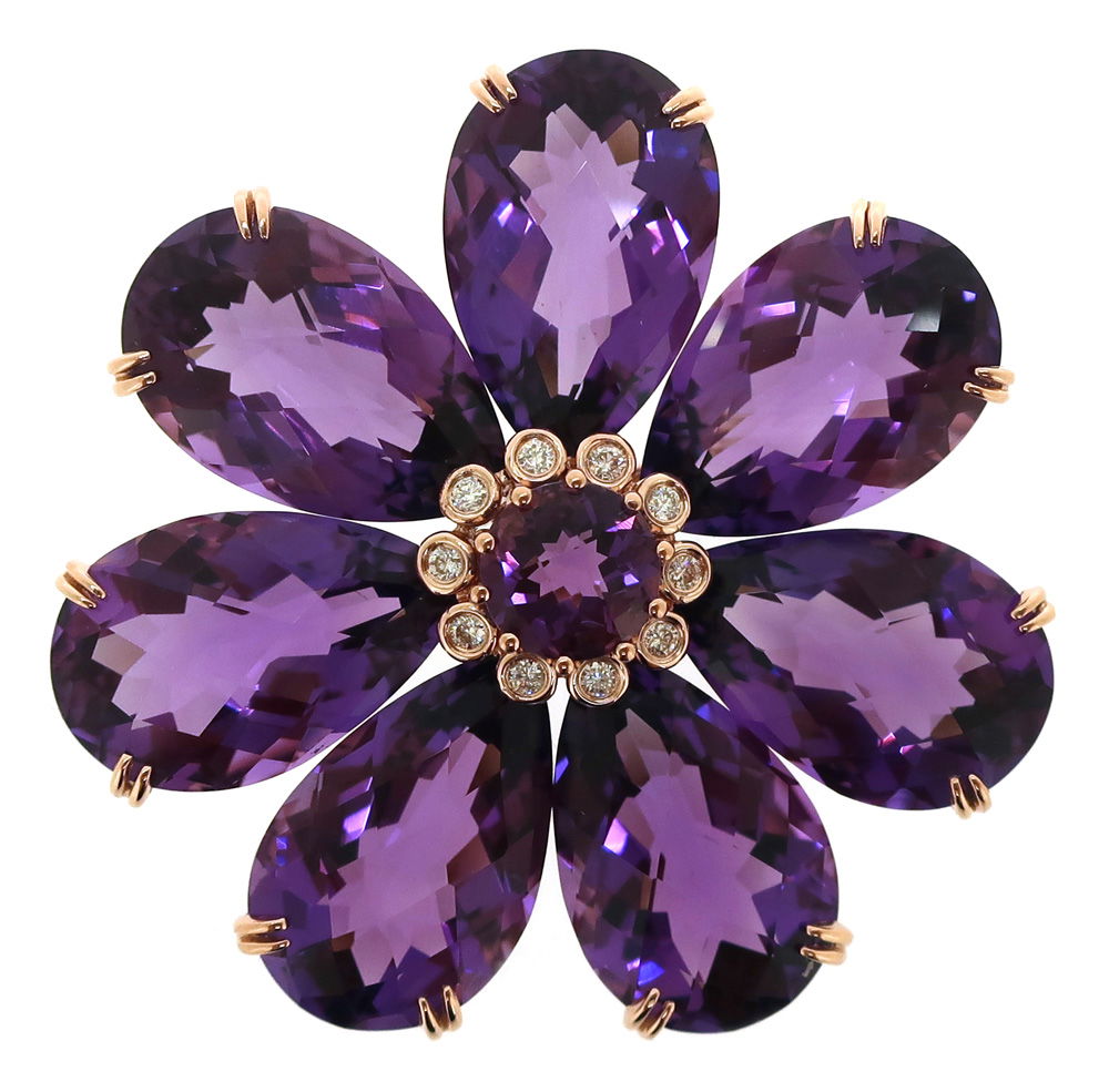 14K ROSE GOLD DIAMOND AND AMETHYST PENDANT WITH CHAIN