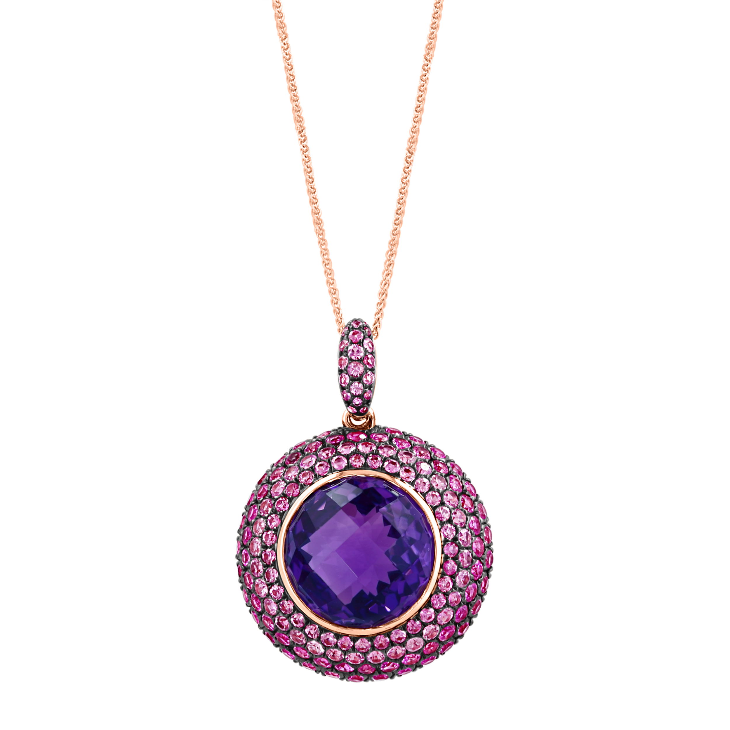 14K ROSE GOLD GOLD SHADED PINK SAPPHIRE AND AMETHYST PENDANT WITH CHAIN