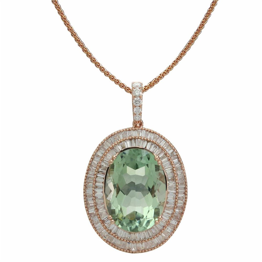 14K ROSE GOLD DIAMOND AND GREEN AMETHYST PENDANT