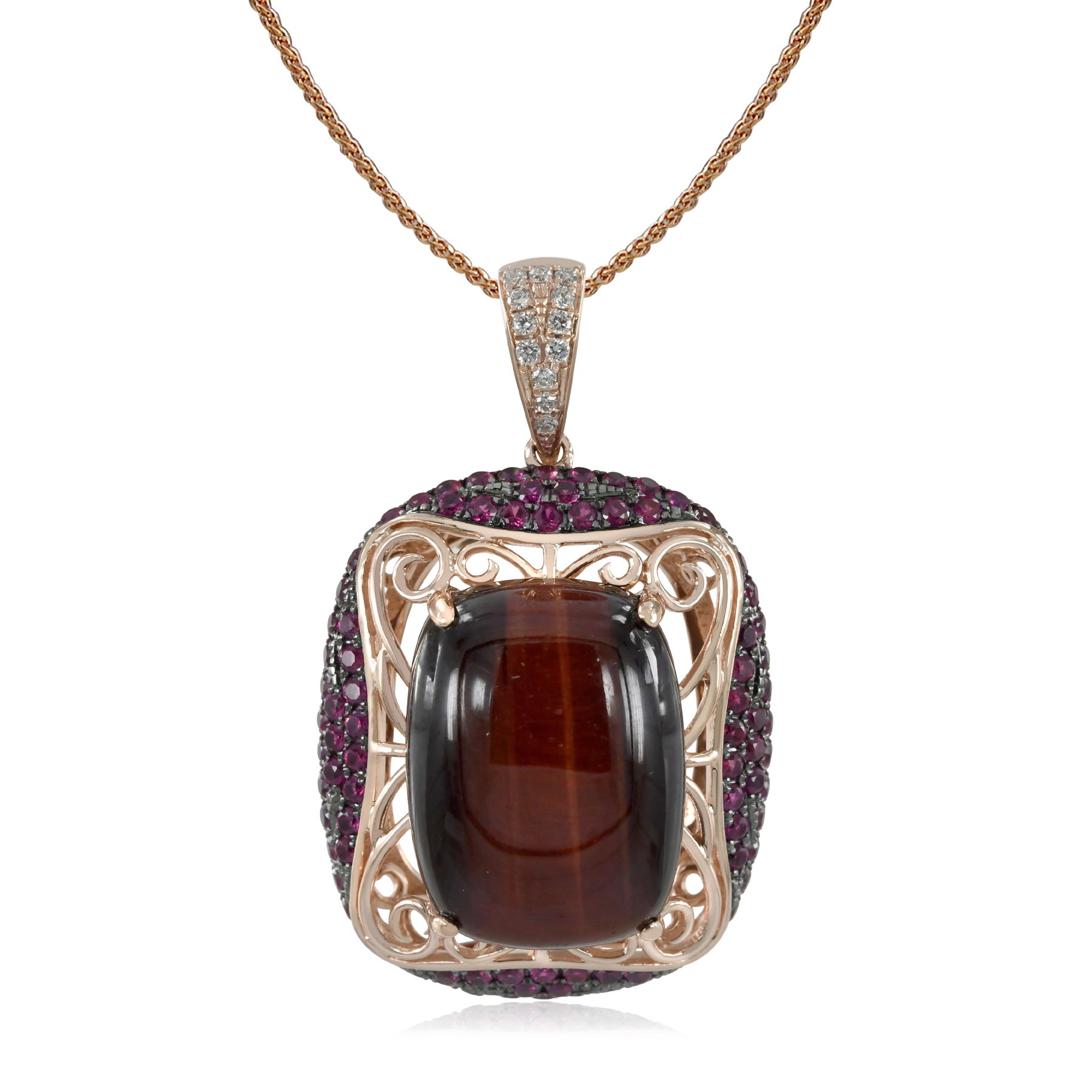 14K ROSE GOLD RUBY AND RED TIGER EYE PENDANT WITH CHAIN