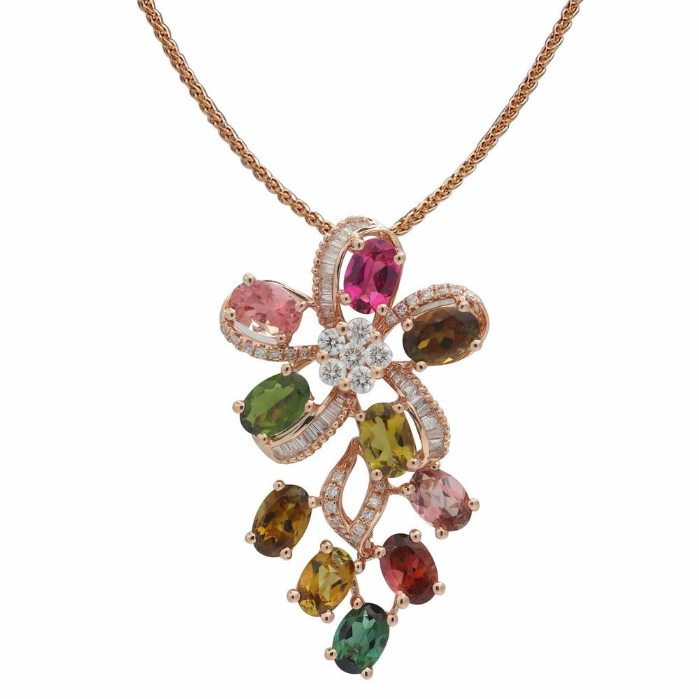 14K ROSE GOLD DIAMOND AND MULTI COLOR TOURMALINE PENDANT WITH CHAIN