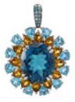 14K WHITE GOLD TREATED BLUE DIAMOND, MULTICOLOR AND LONDON BLUE TOPAZ PENDANT WITH CHAIN