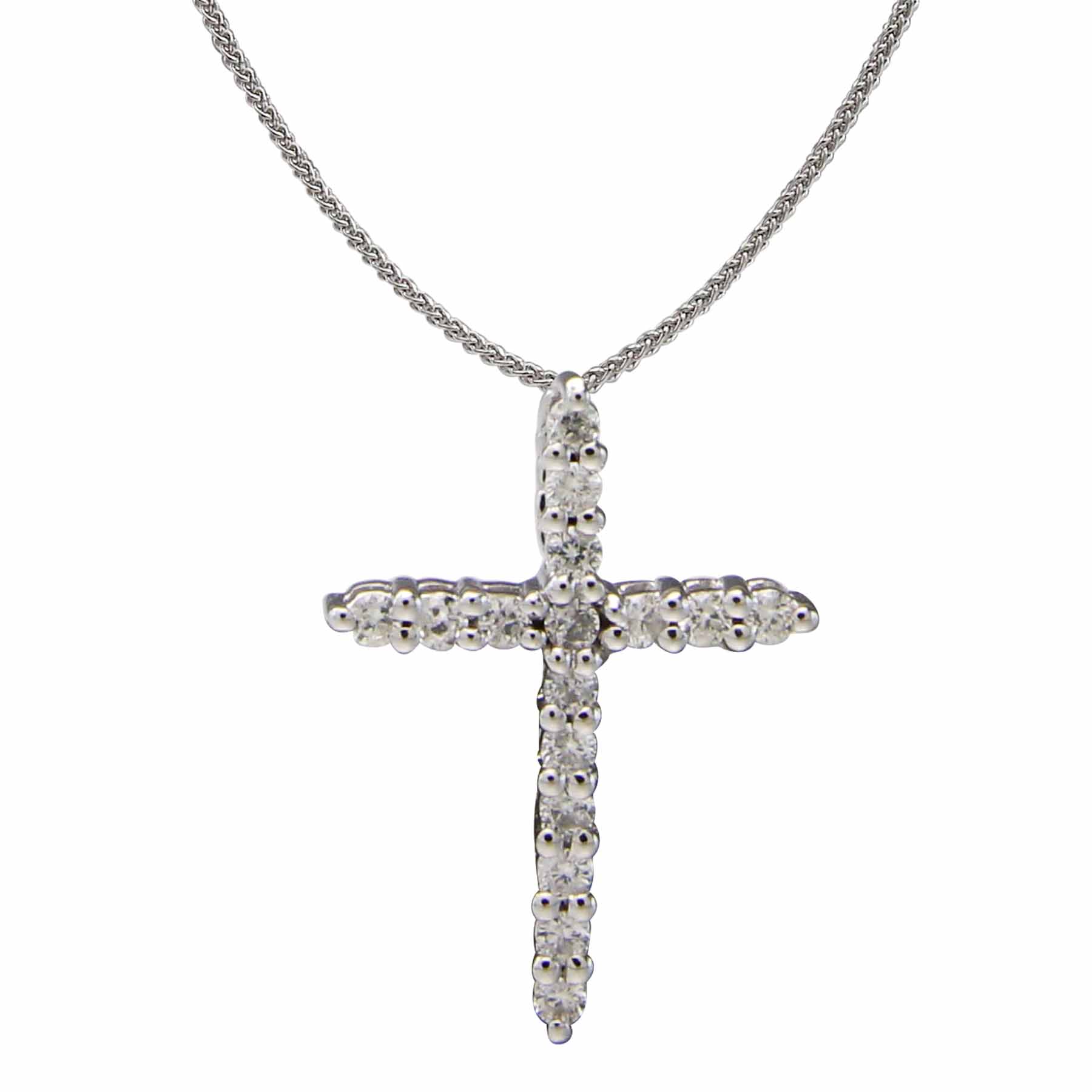14K WHITE GOLD DIAMOND CROSS PENDANT WITH CHAIN