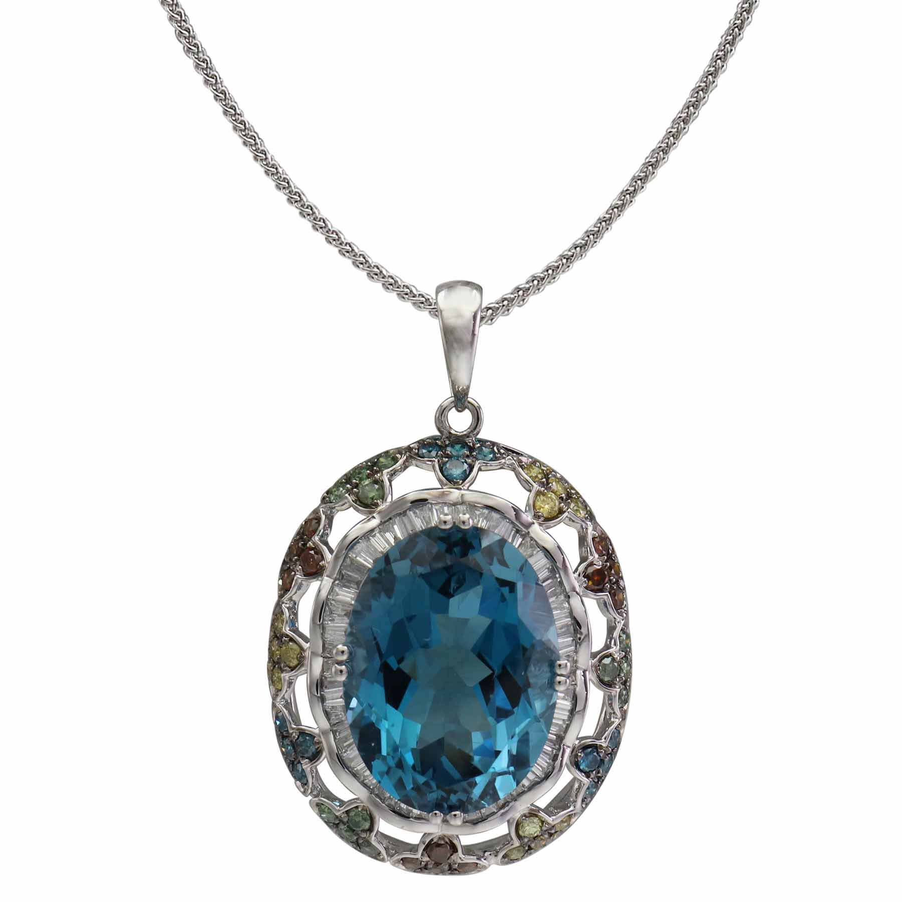 14K WHITE GOLD MULTICOLOR DIAMOND AND LONDOND BLUE TOPAZ PENDANT WITH CHAIN