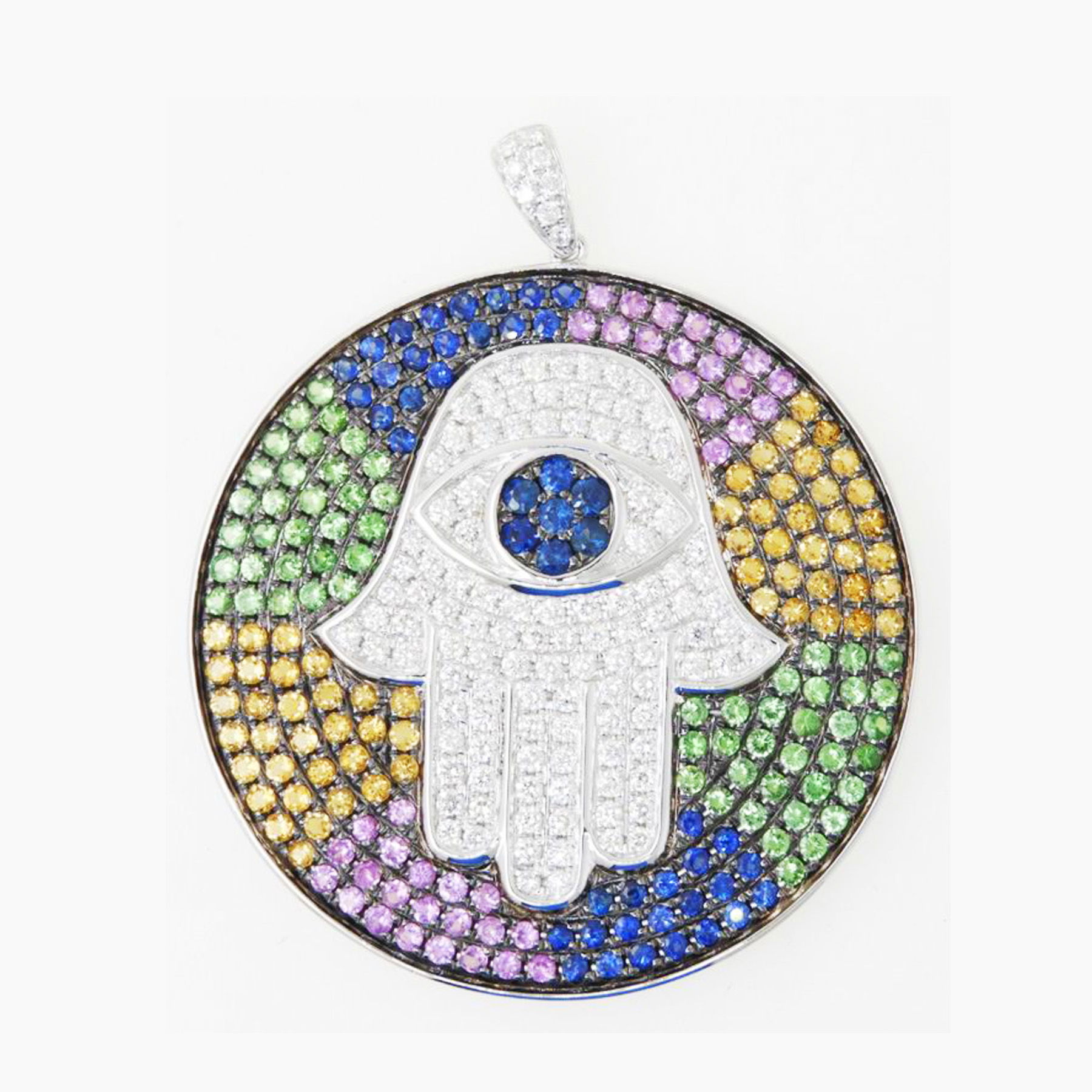 14K WHITE GOLD DIAMOND, CITRINE, TSAVORITE, PINK SAPPHIRE AND SAPPHIRE PENDANT WITH CHAIN