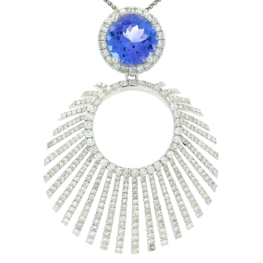 14K WHITE GOLD DIAMOND AND TANZANITE PENDANT WITH CHAIN
