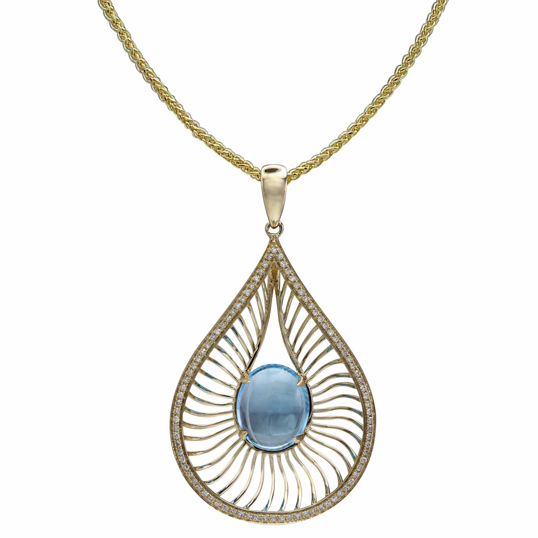 14K YELLOW GOLD DIAMOND AND SWISS BLUE TOPAZ PENDANT WITH CHAIN