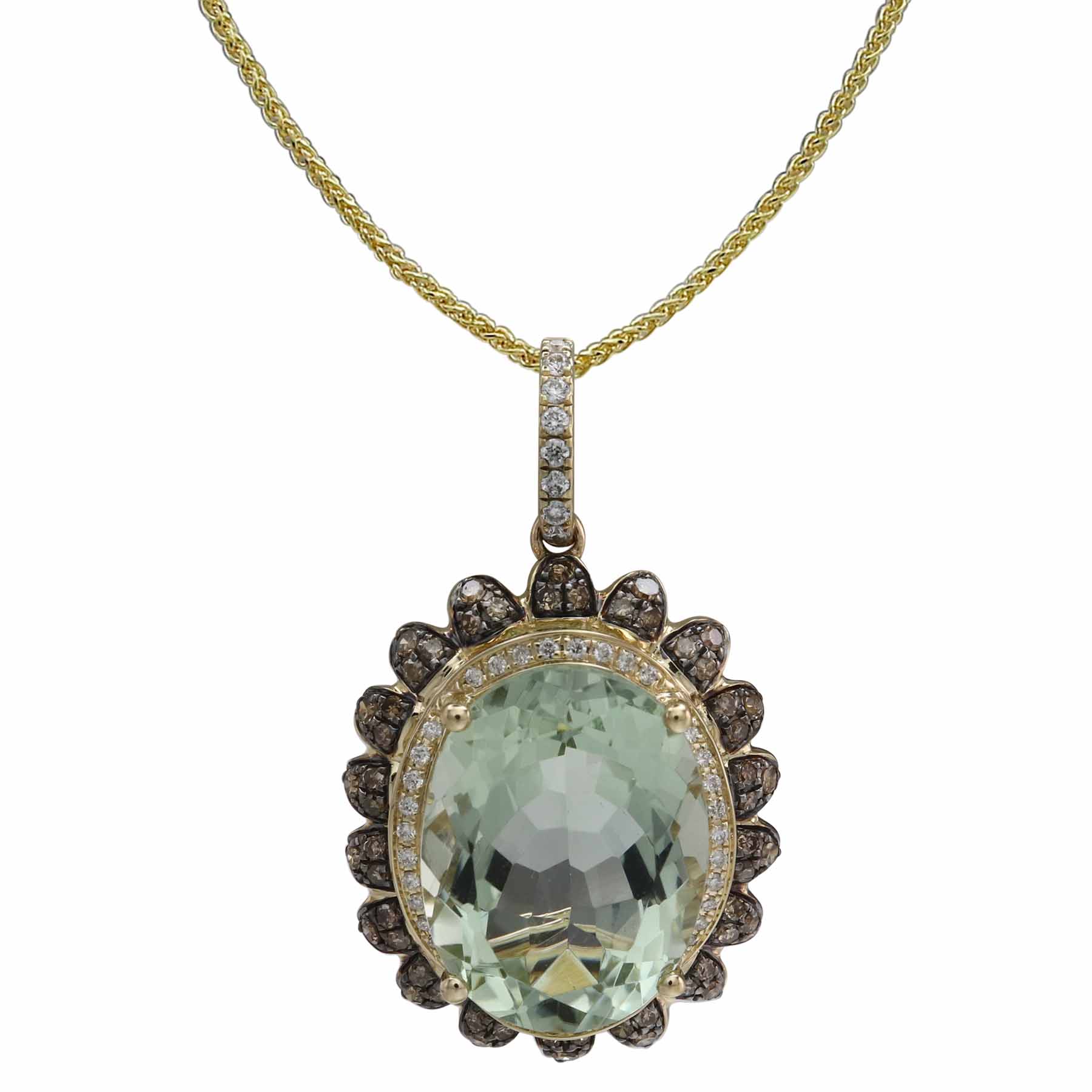 14K YELLOW GOLD DIAMOND AND BROWN DIAMOND AND GREEN AMETHYST PENDANT