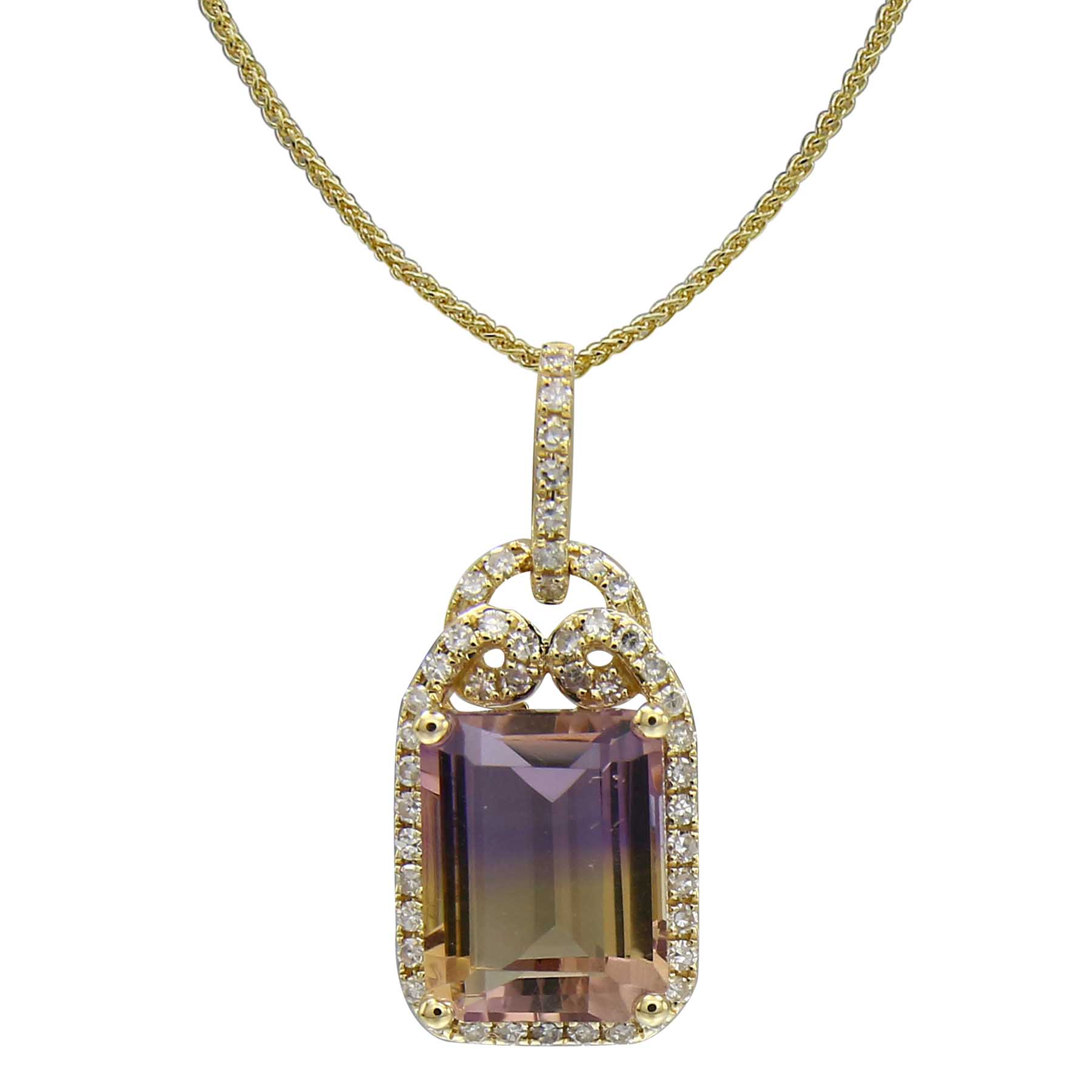 14K YELLOW GOLD DIAMOND AND AMETRINE PENDANT WITH CHAIN