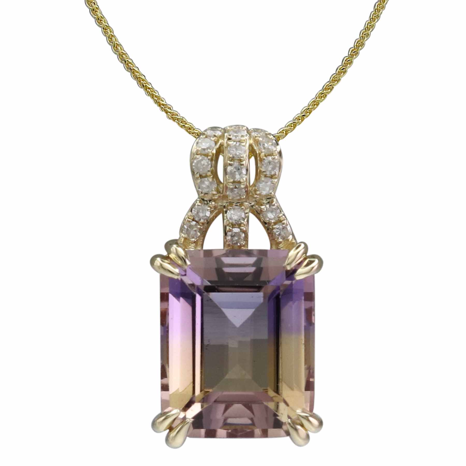 14K YELLOW GOLD DIAMOND AND AMETRINE PENDANT WITH CHAIN