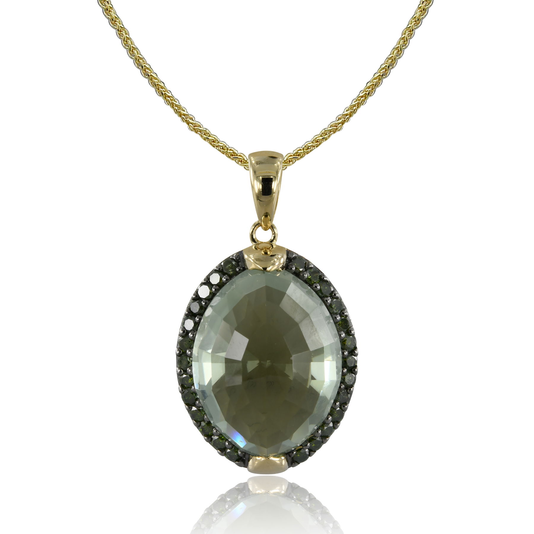 14K YELLOW GOLD TREATED GREEN DIAMOND AND GREEN AMETHYST PENDANT WITH CHAIN
