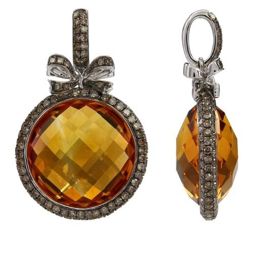 - 14K YELLOW GOLD DIAMOND, MULTICOLOR DIAMOND AND CITRINE PENDANT WITH CHAIN